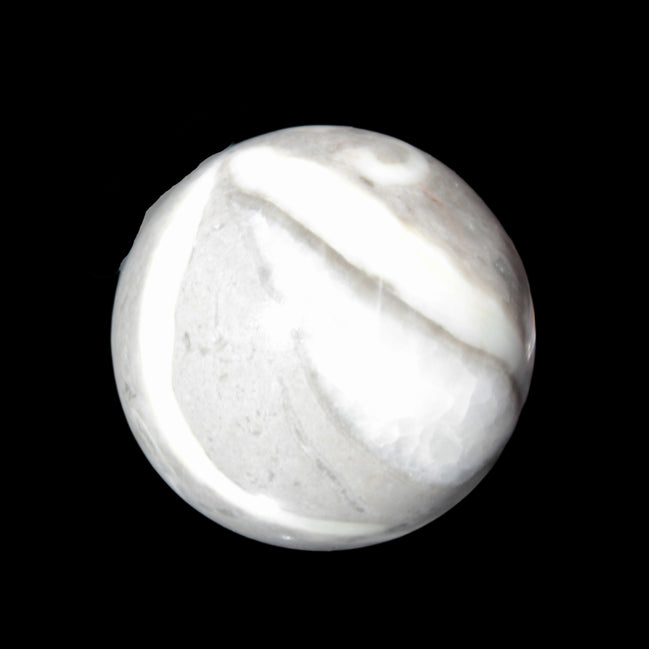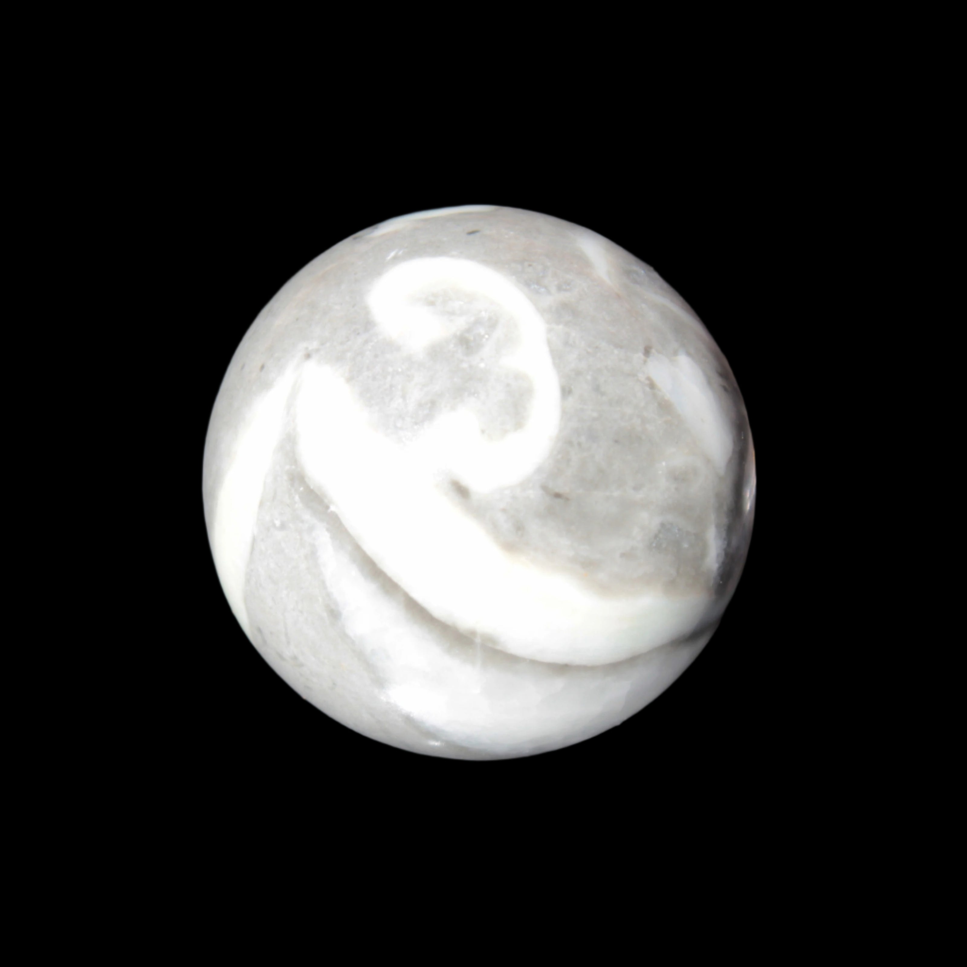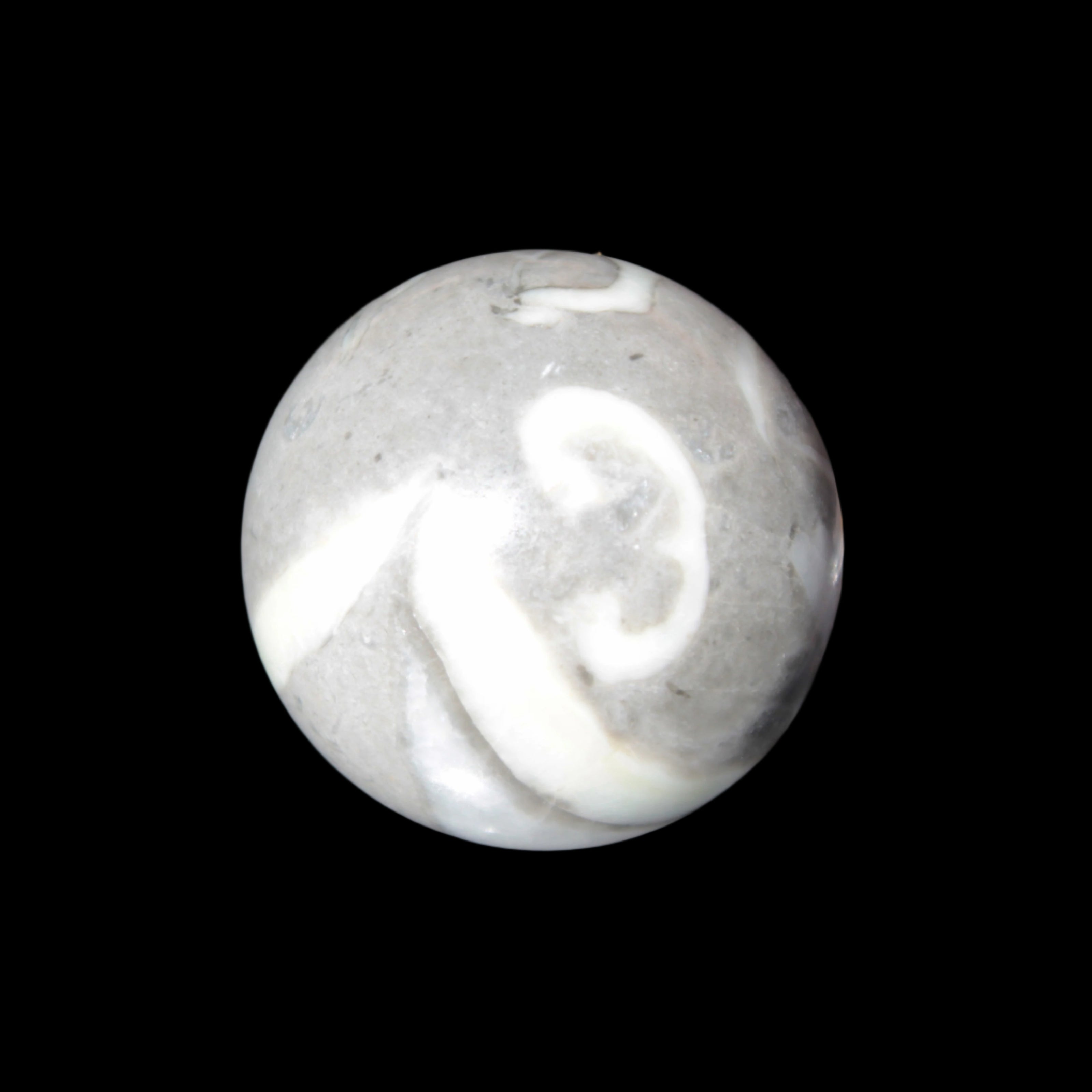 This Thousand Eye Stone sphere 41mm weighs 100g. Thousand Eye Stone is also called Fossil Shell Jasper, Seashell Jasper and Shell Marble. It is a form of Marble and not Jasper. Marble is a nurturing and protective stone. It is highly grounding. Thousand Eyes Stone has the qualities of regular Marble, but these are amplified. It can help you find more insight into your desires, letting you to focus on what is important to you.