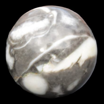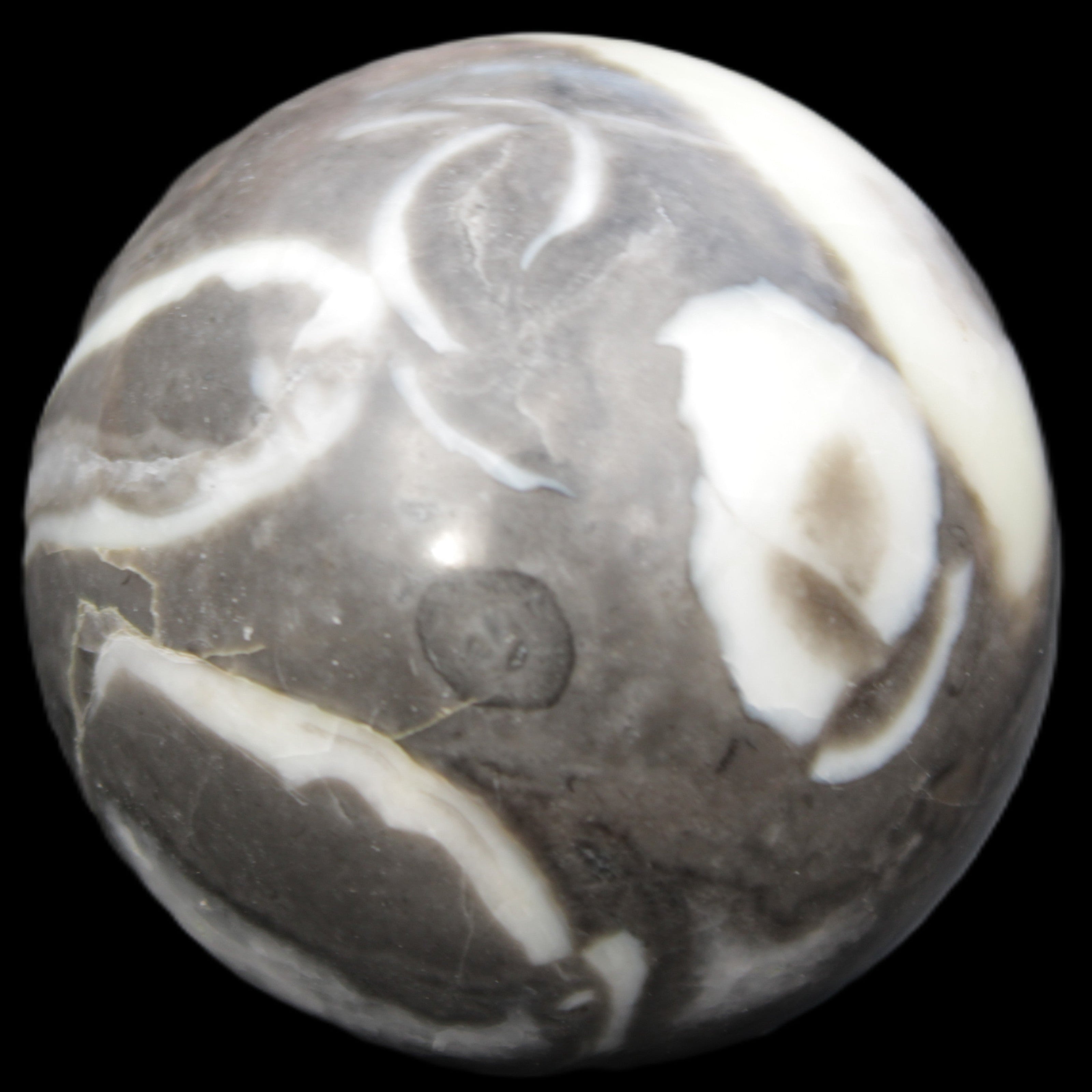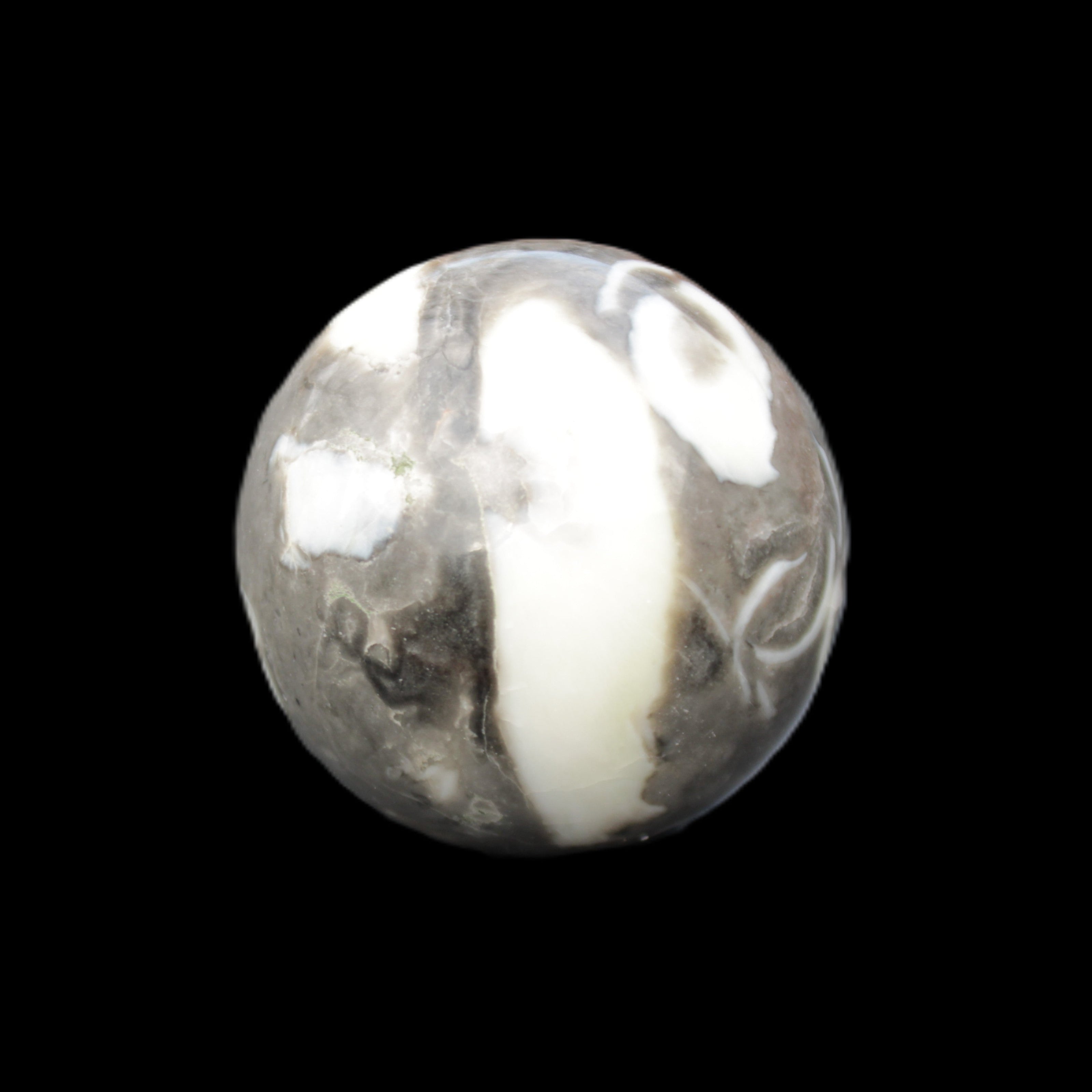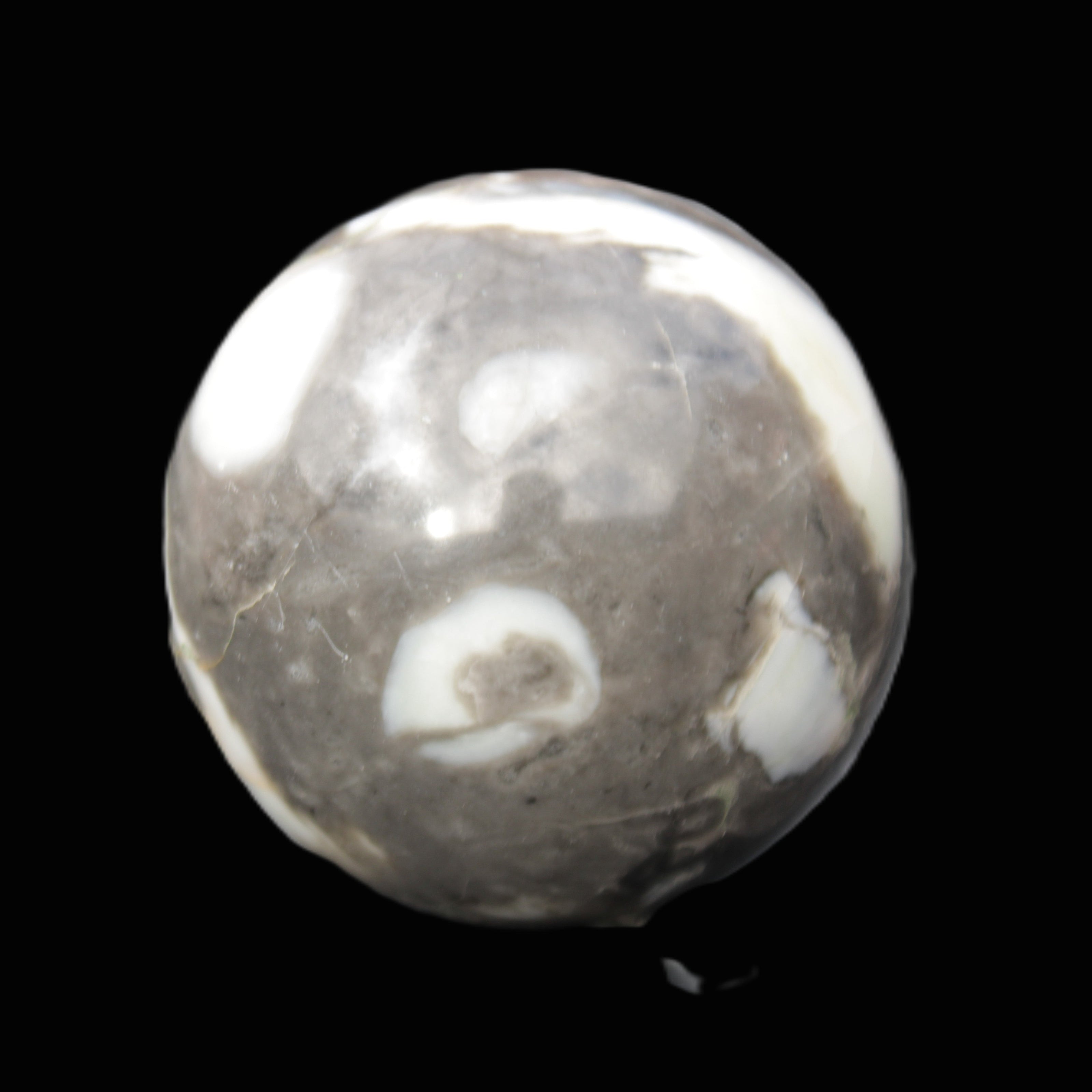 This Thousand Eye Stone sphere 66mm weigh 404g. Thousand Eye Stone is also called Fossil Shell Jasper, Seashell Jasper and Shell Marble. It is a form of Marble and not Jasper. Marble is a nurturing and protective stone. It is highly grounding.