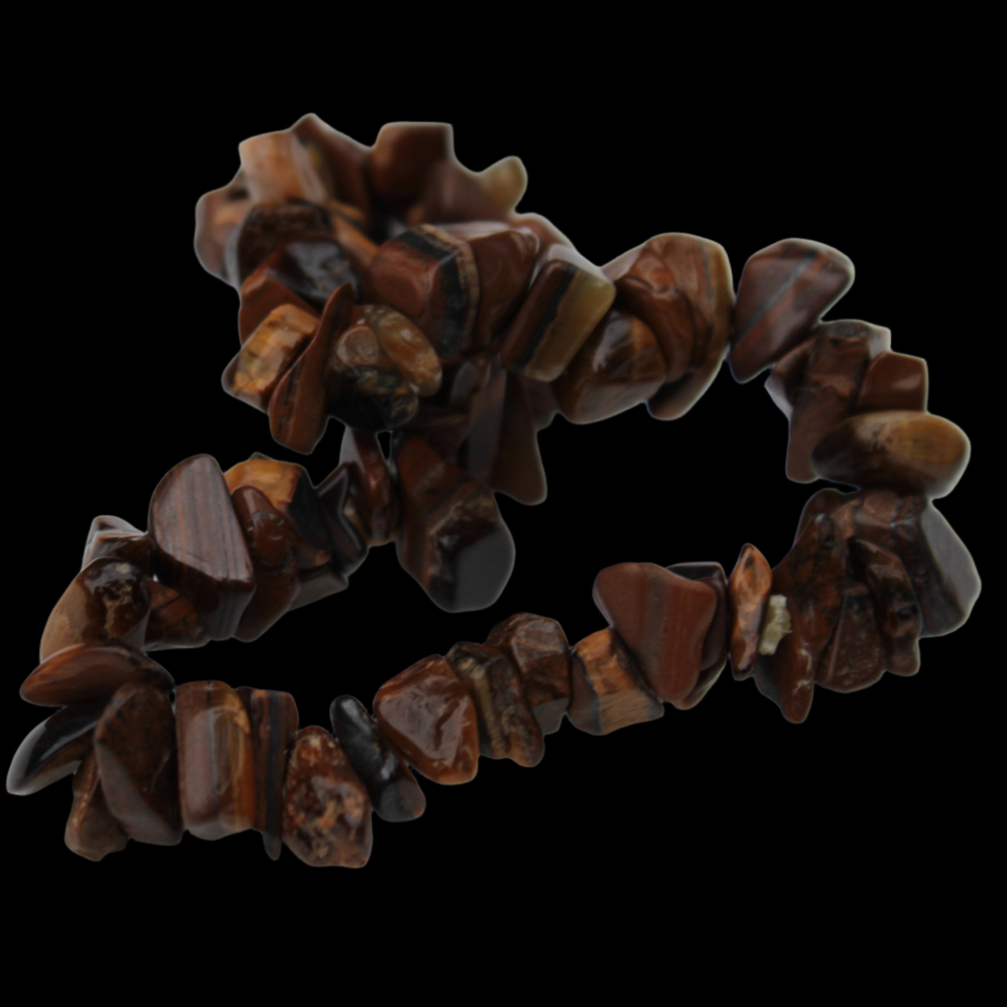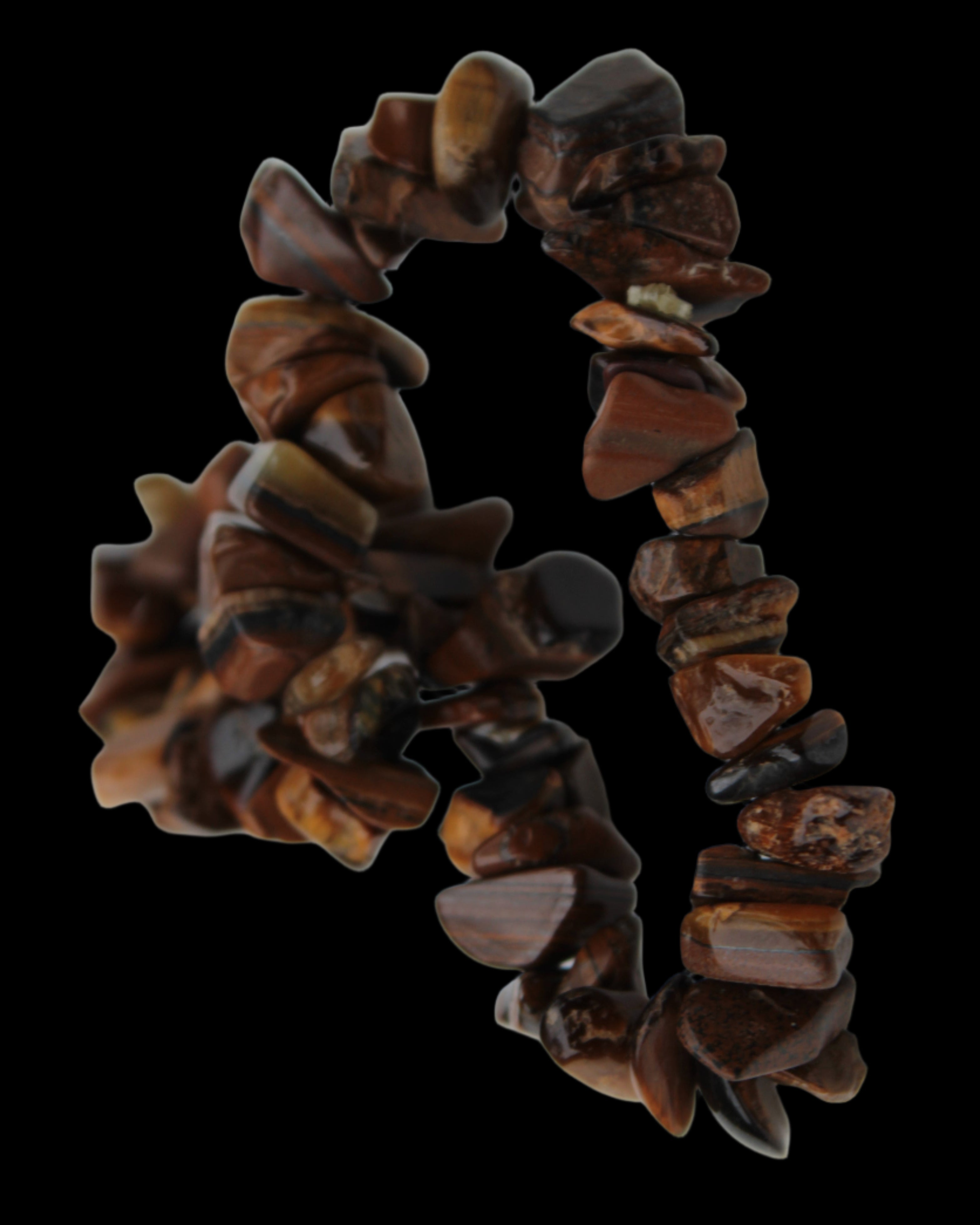 This Tigers Eye chip bracelet selection weighs19g. Combining the energy of the Earth and the Sun, Golden Tigers Eye draws Spiritual energy down to the Earth, while keeping you centred here on the ground. It brings sunny brightness and optimism to a situation, shining insight onto problems. Known as the ‘Confidence Stone’, Golden Tigers Eye is a stone of protection, especially during travel. Golden Tigers Eye enhances integrity, self-confidence and practicality. Golden Tigers Eye can help you to see clearly, without illusion. It is a stone that brings good luck and prosperity, often in the form of money. It has been used as a talisman against bad luck and curses since ancient times. Golden Tigers Eye is necessary for anyone’s healing kit.