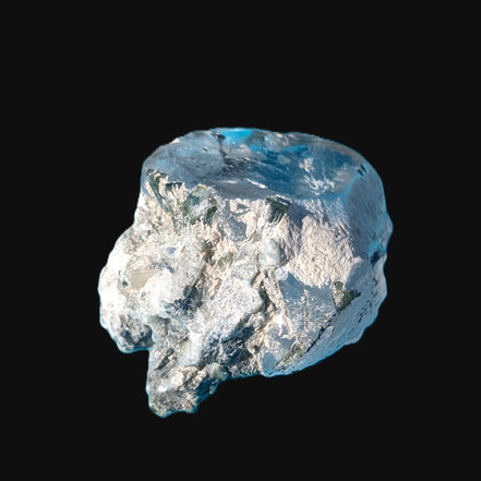 The Green Tourmaline is a form of Elbaite. This is an igneous mineral that is a complex lithium-rich borosilicate. Elbaite usually forms as heavily-striated elongated rods or prismatic crystals. Elbaite can be any colour of the rainbow, and crystals can be multi-coloured.