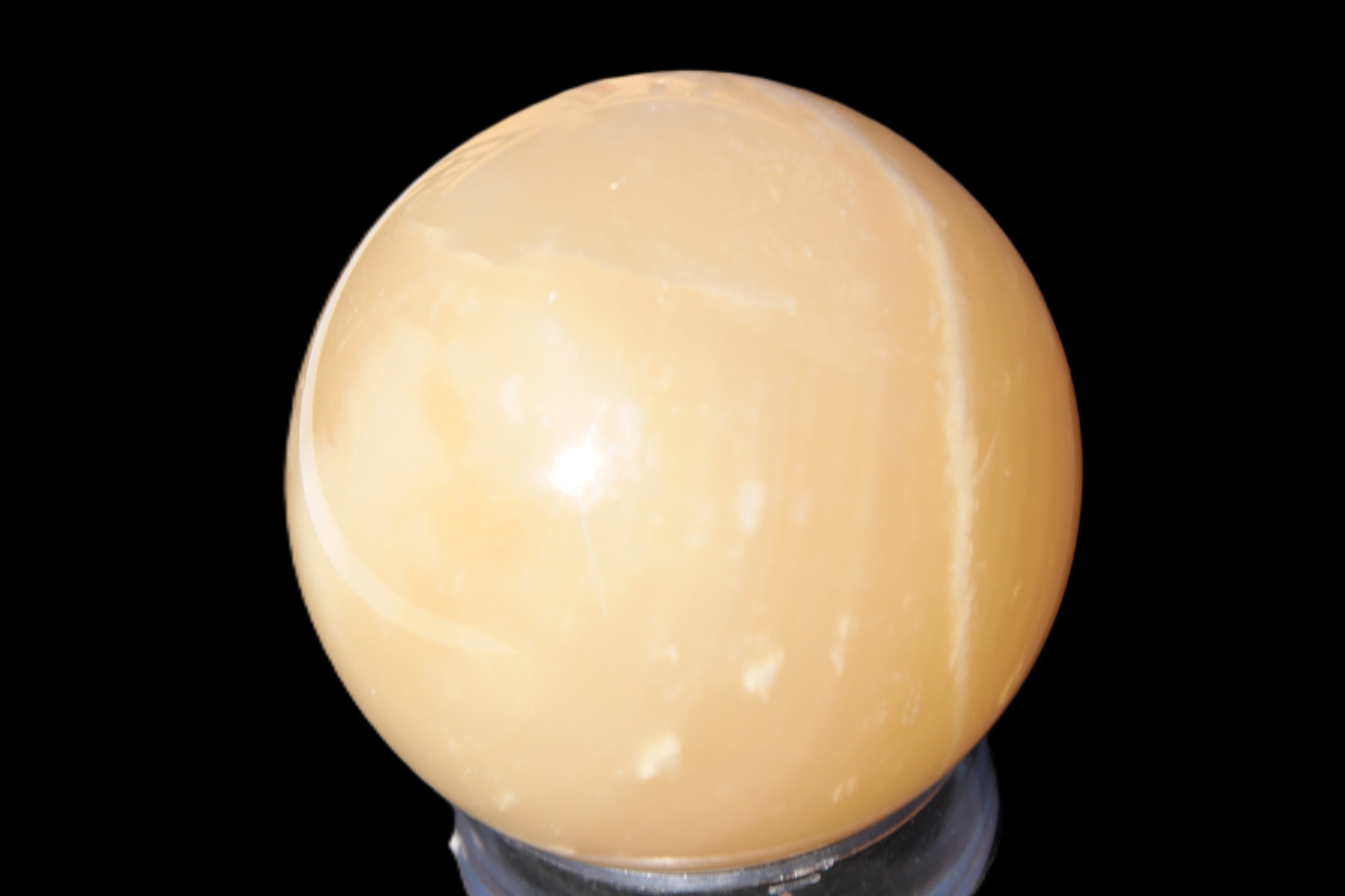 This Topaz Honey Calcite sphere 63mm weighs 341g. It has topaz tones. The sphere was hand fashioned in Karachi for Rocks and Things Store by Lawrence Handicrafts from the stone found locally in Pakistan. It has faint banding and other features including fissures. Honey Calcite is a stone for motivation and creativity. Calcite is a powerful energy amplifier and cleanser. Calcite removes old energy patterns, allowing you to find increased personal motivation and drive. The purifying energy of Calcite cleanses negative energy that has become stored in your body or a space you use. Calcite is also known as the ‘Stone of the Mind’. It has the capacity to unlock your inner vision and heighten mental discernment and analysis.