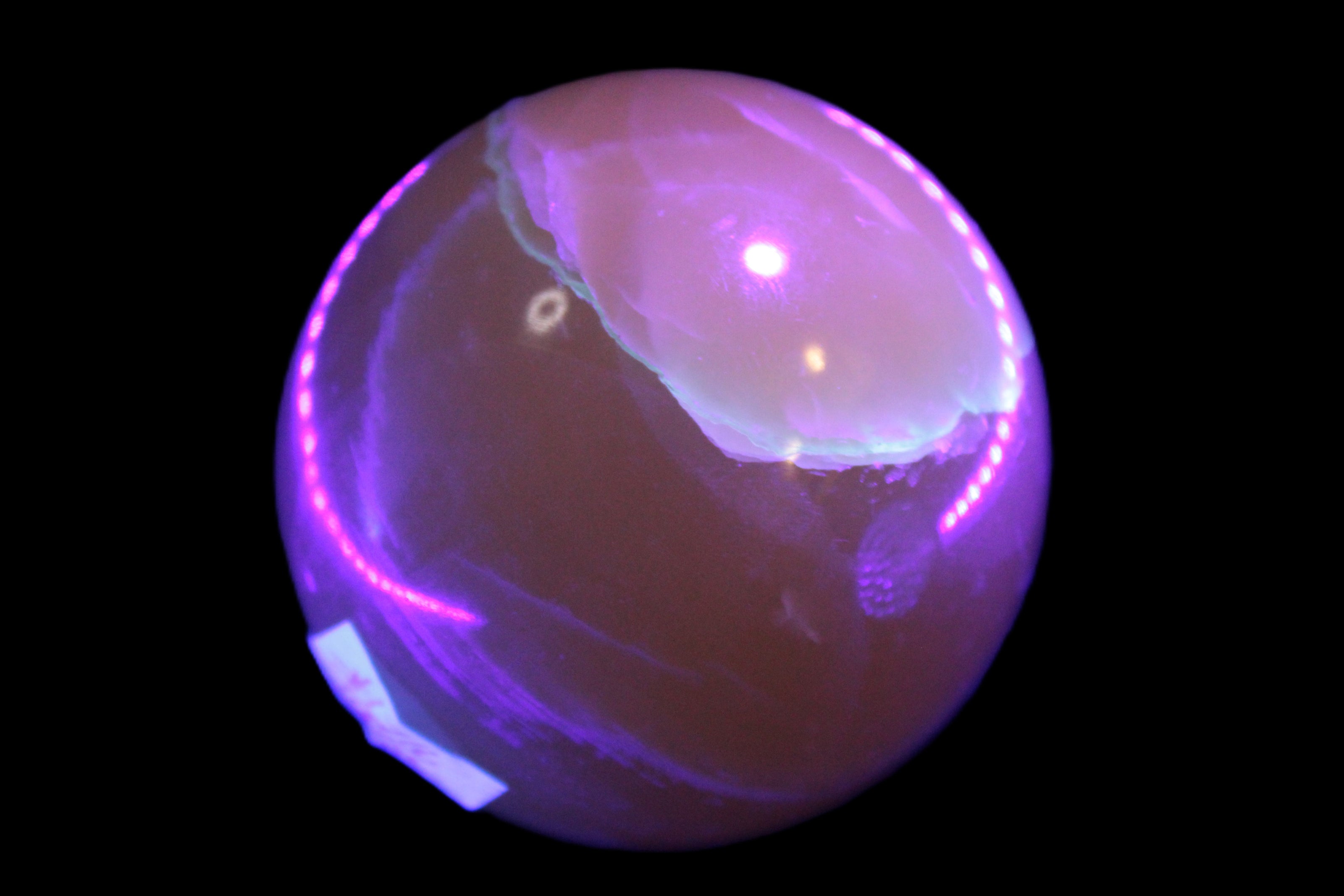 Topaz Honey Calcite sphere 63mm 341g in sunlight - Rocks and Things Store