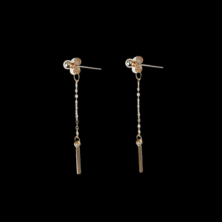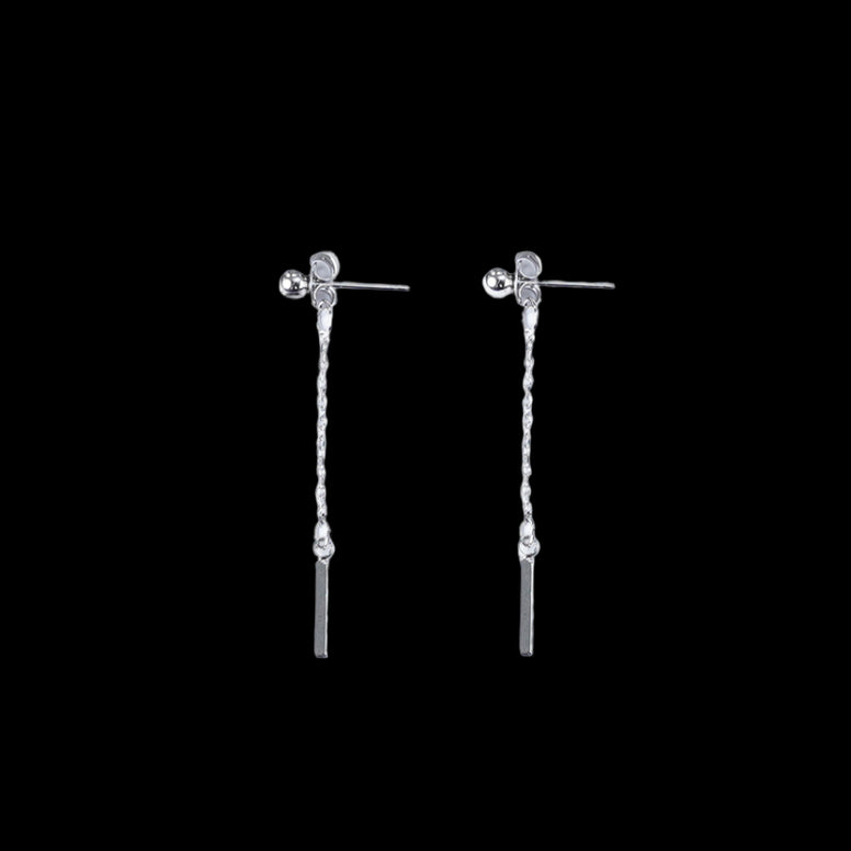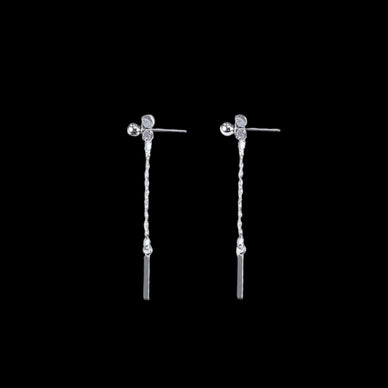 The earring is made of 3mm ball posts and chain back screws, and it can be worn in two ways: short by using an O-ring attached to a chain or long without an O-ring.  *Model is shown wearing the long version
