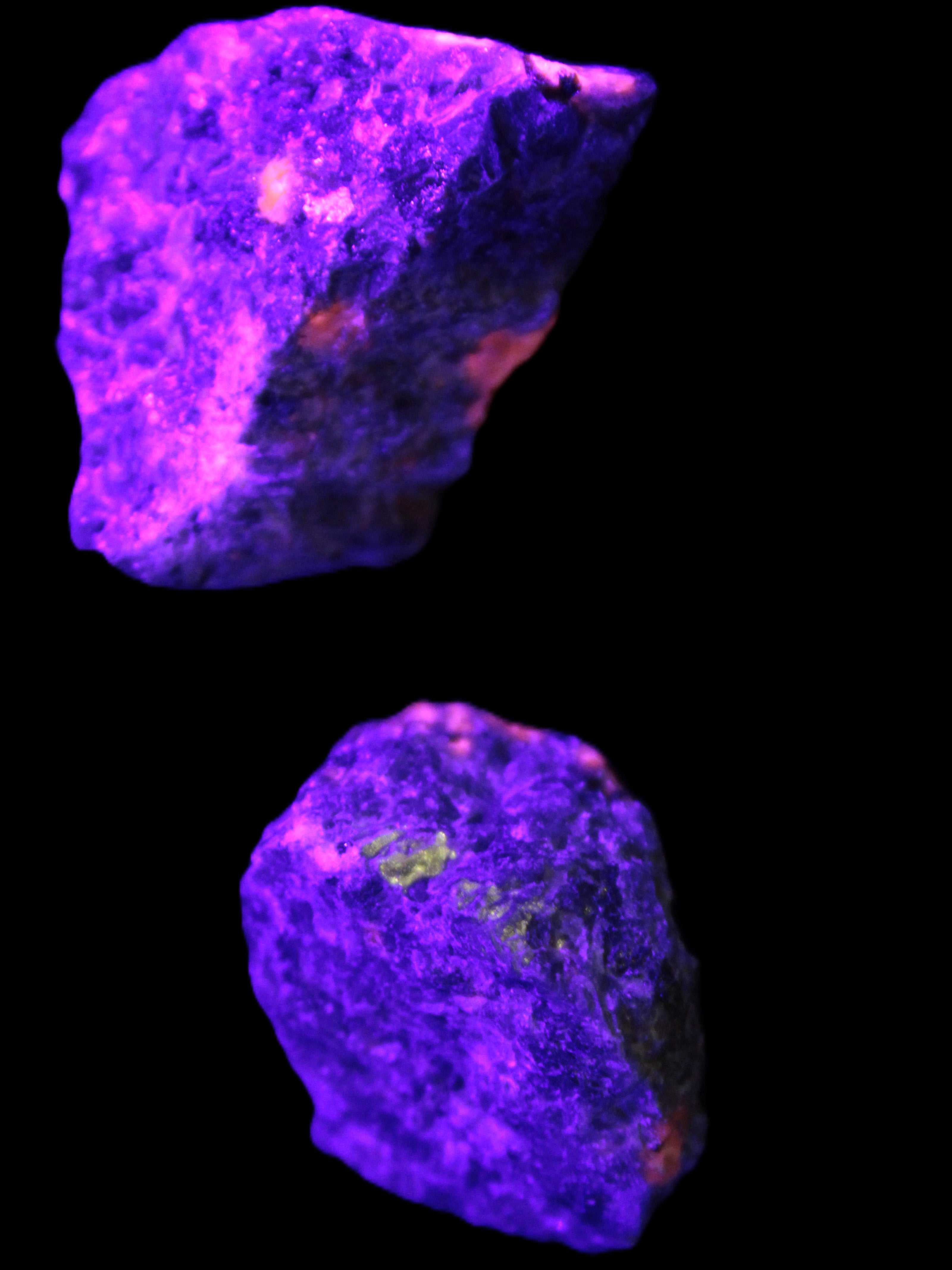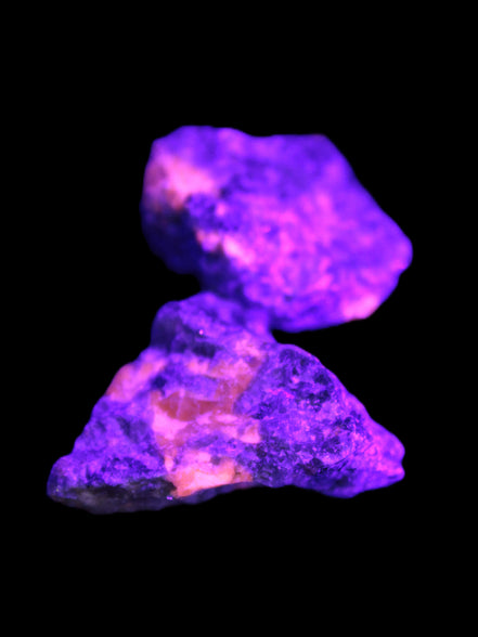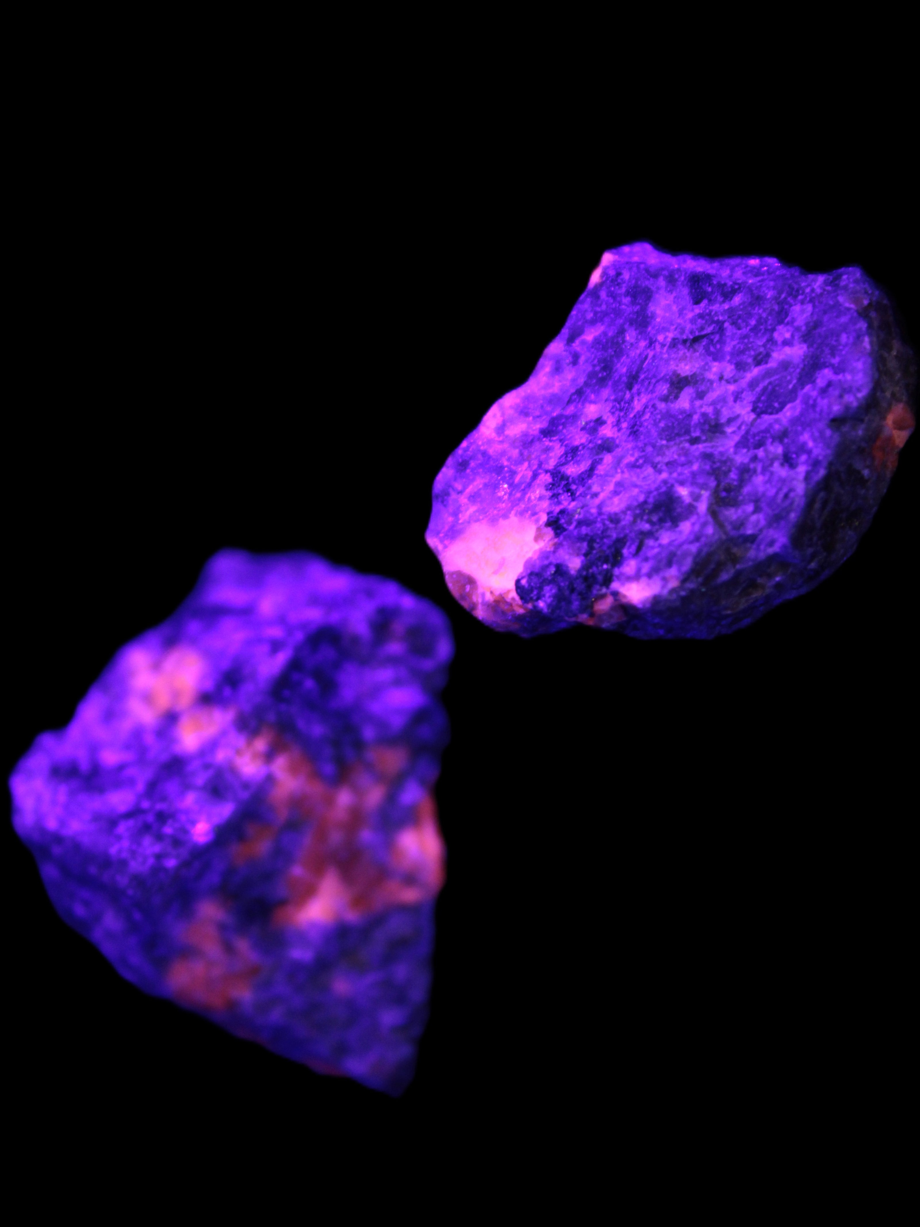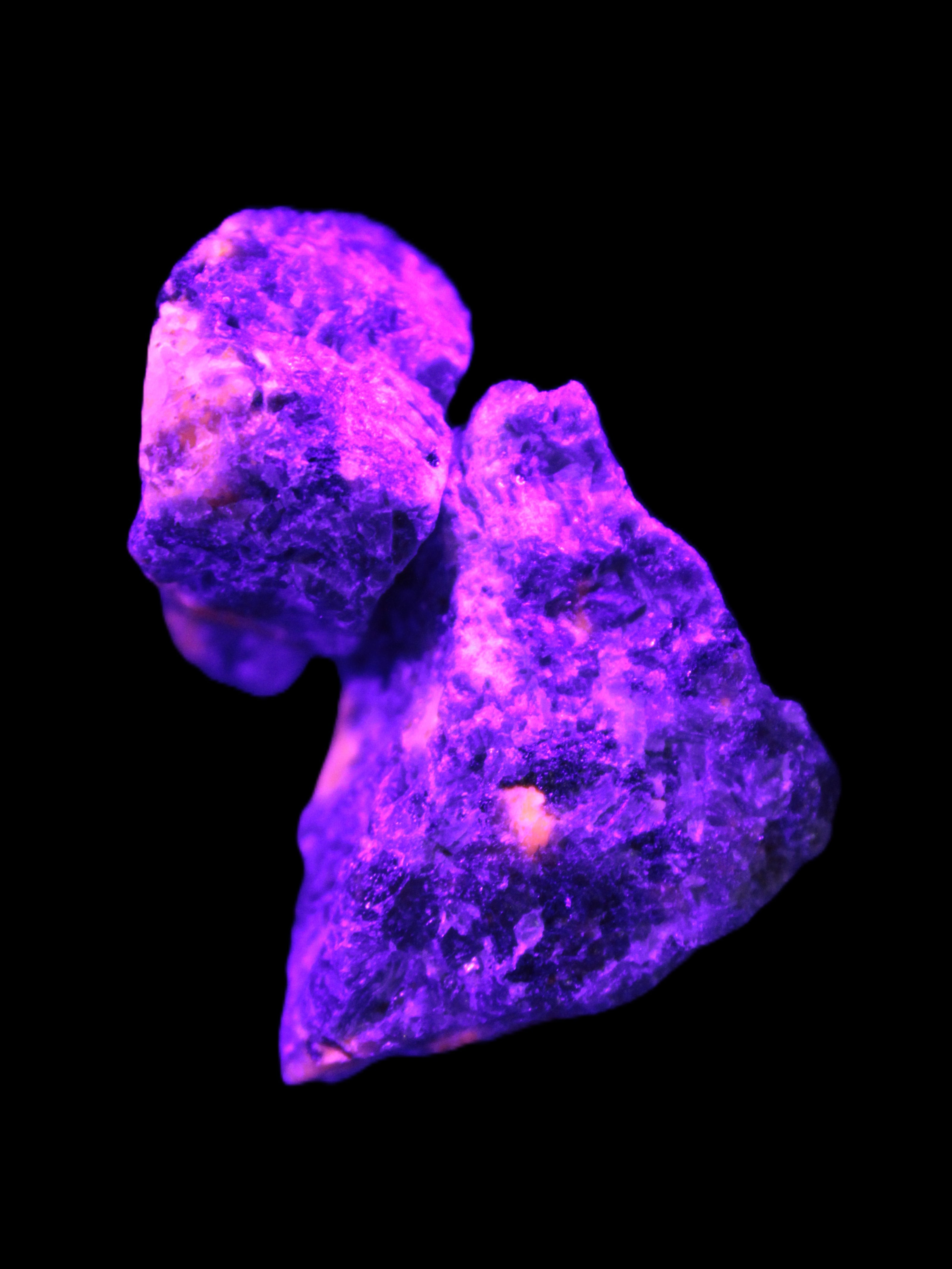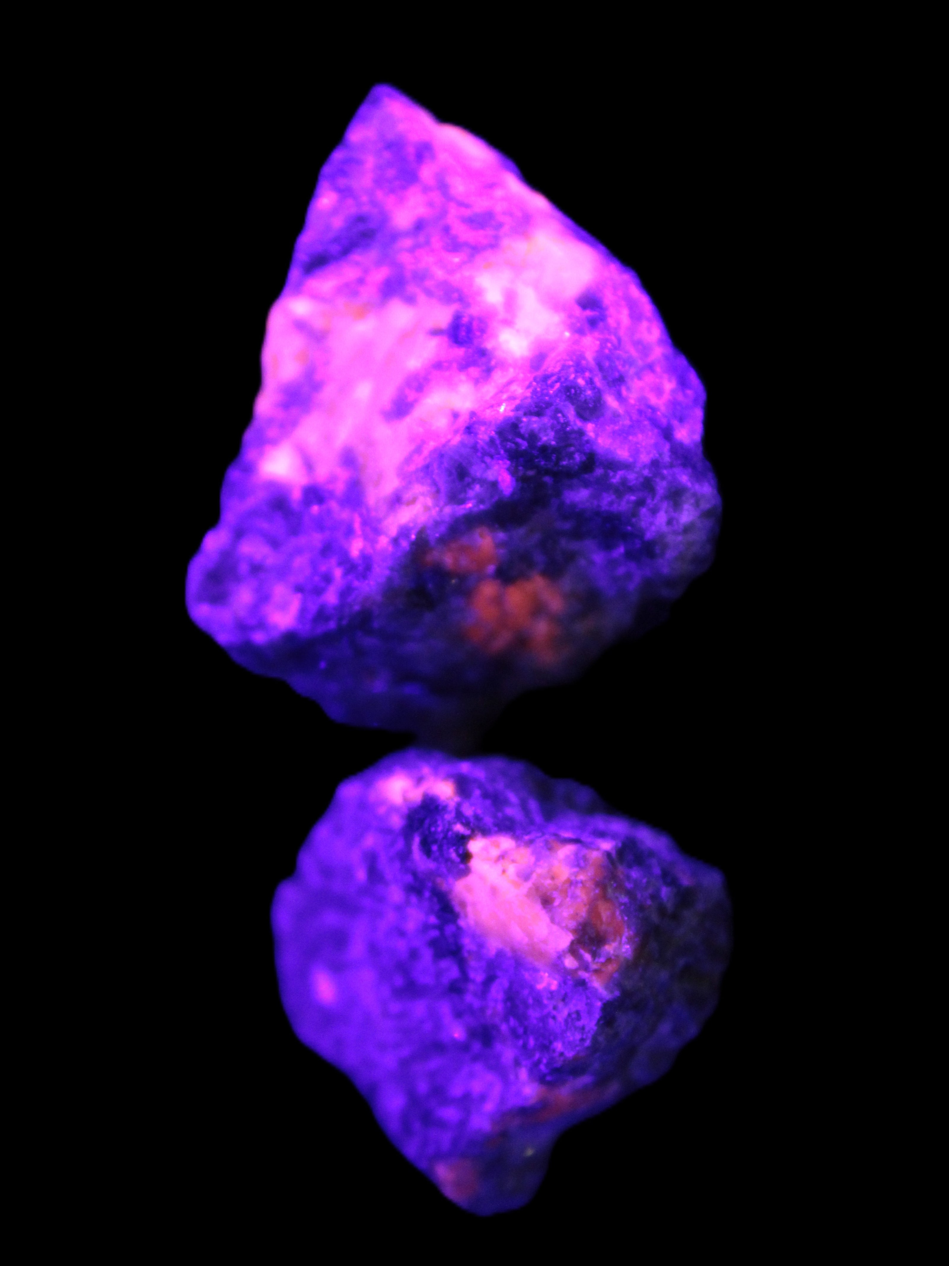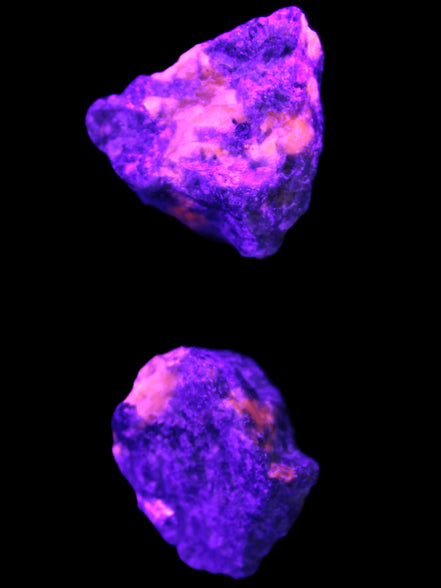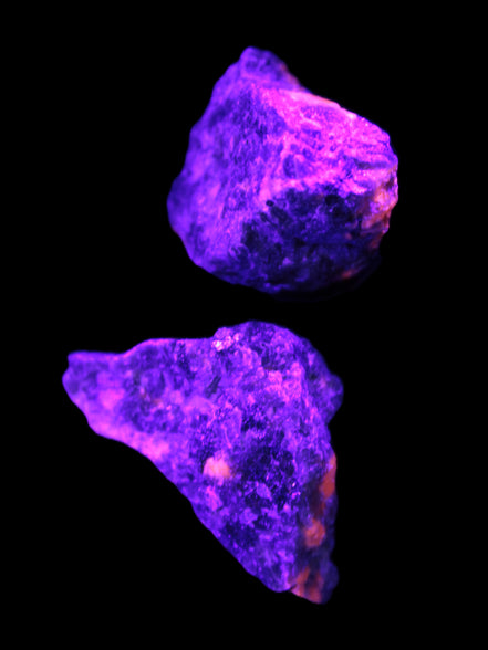 These rare Syenite pebbles are known as Yooperlite. They contain a Sodalite that is strongly fluorescent under UV light. Most Sodalite will fluoresce orange in UV light. Yooperlite brightly fluoresces with a distinctive electric orange colour.