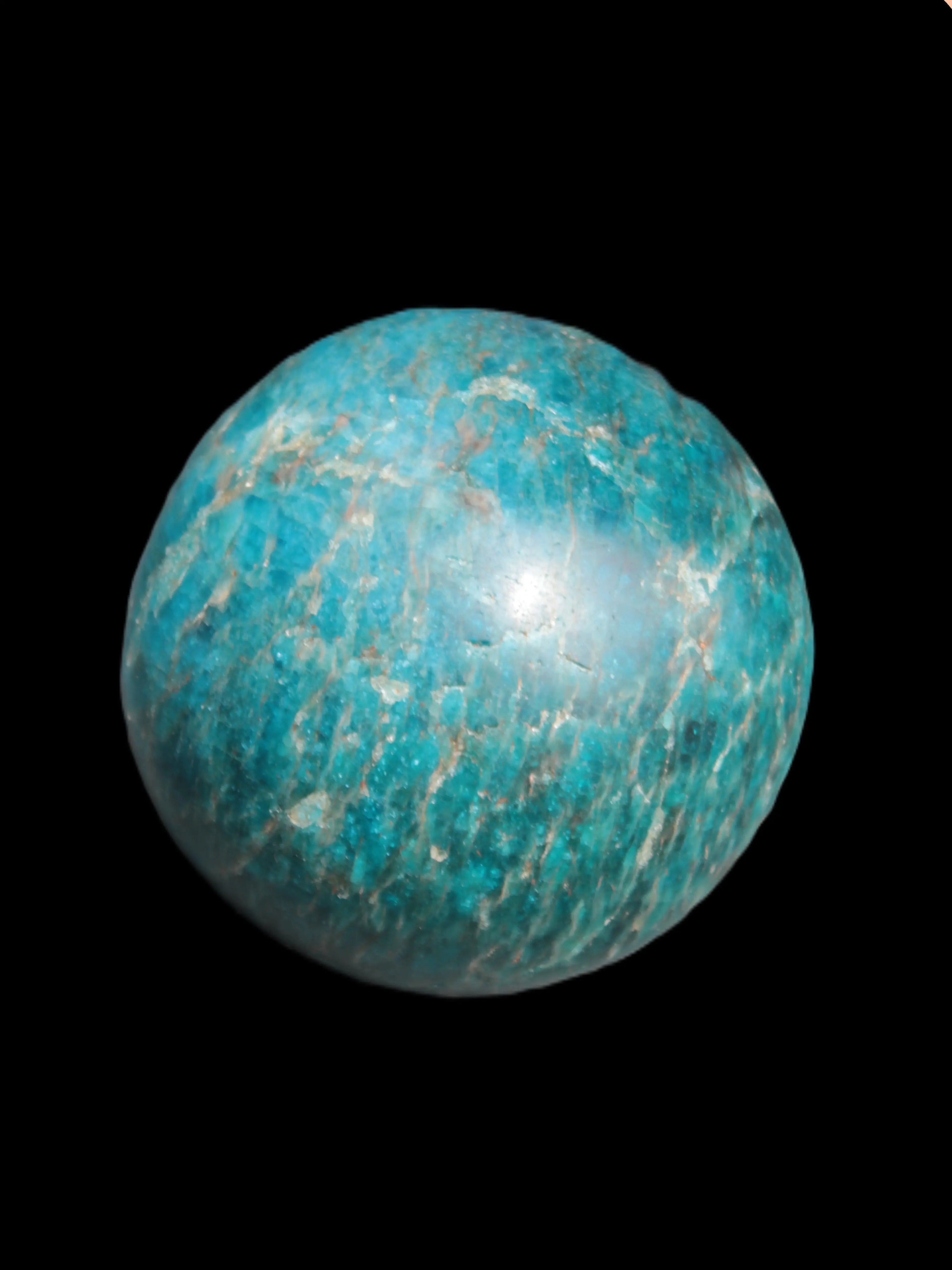 This Vivid Blue Apatite sphere 74mm 709g is a beautiful example of this bright electric-blue to blue-green stone. This wonderful stone is found in Madagascar. Blue Neon Apatite enhances your ability to turn ideas into reality and helps you achieve results. As a powerful Throat Chakra stone, Apatite enhances communication and self-expression. It is traditionally associated with humanitarian efforts and teaching. This makes Apatite a great stone for teachers or students. Apatite encourages easy and open social interactions.