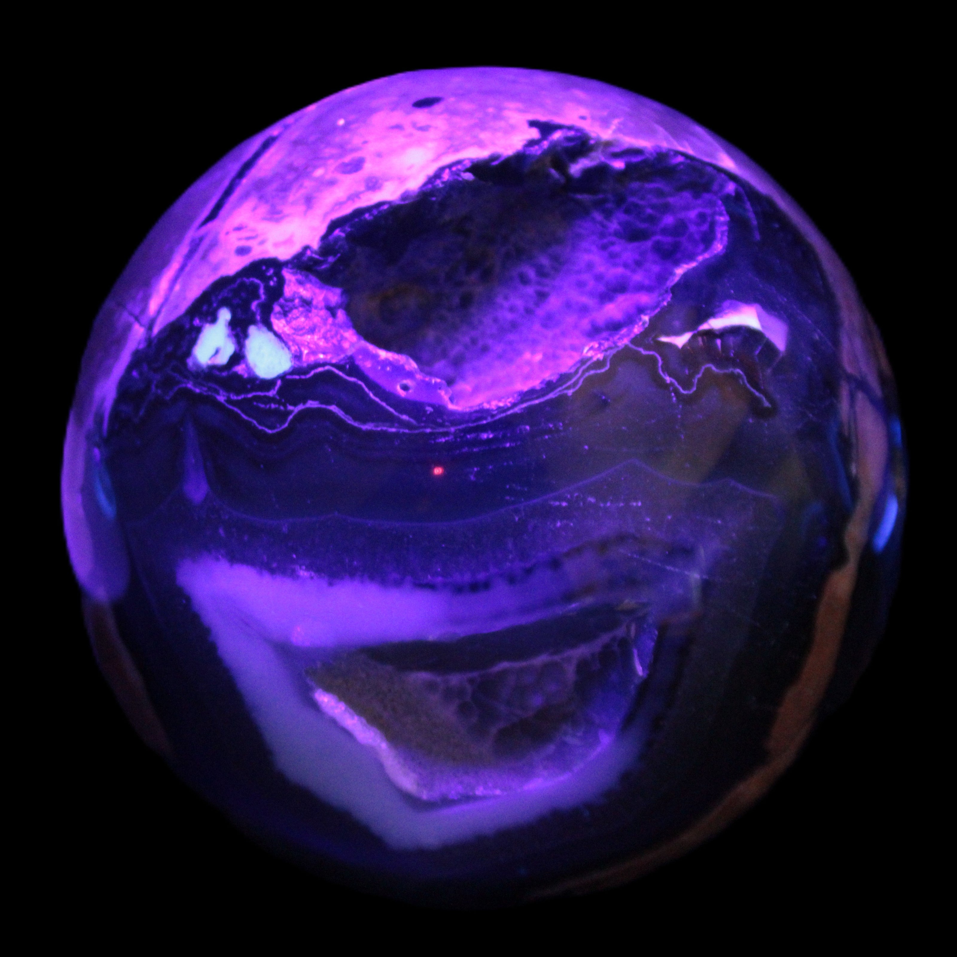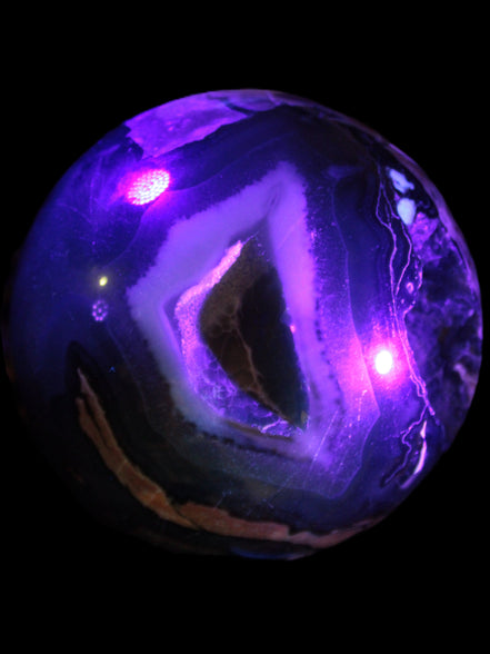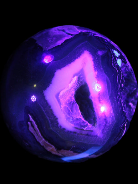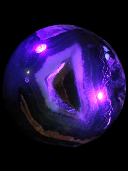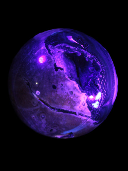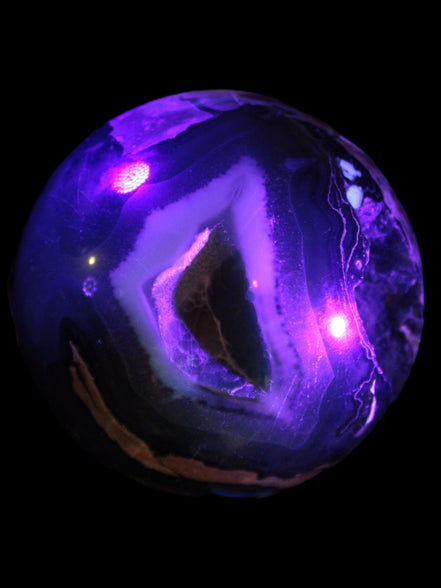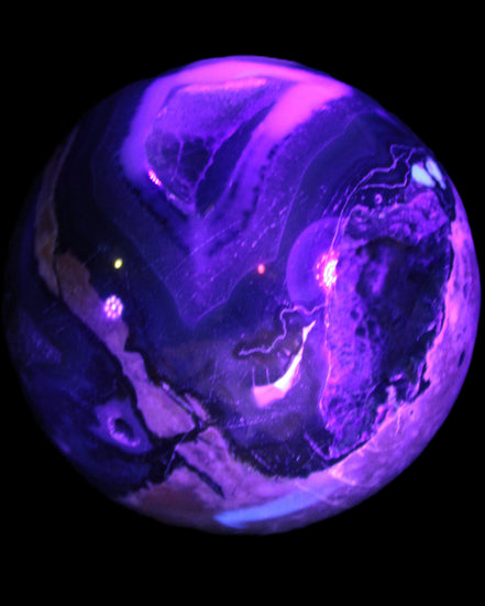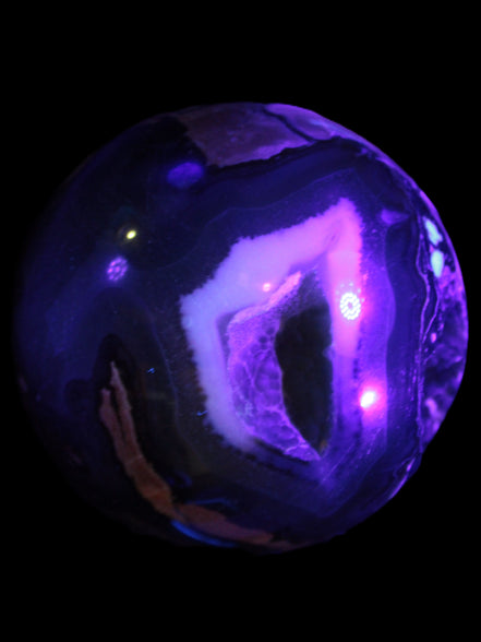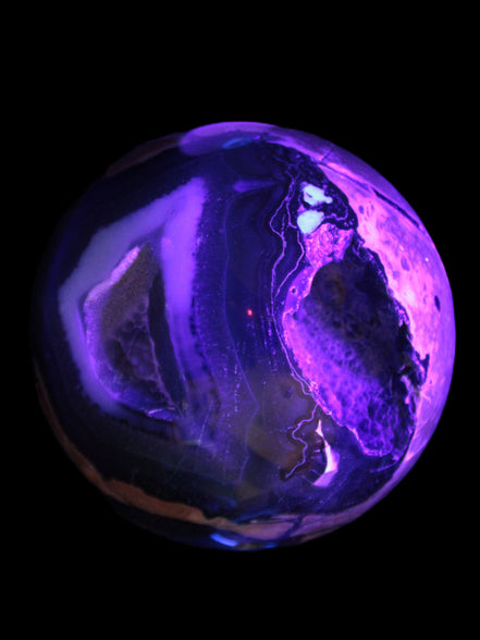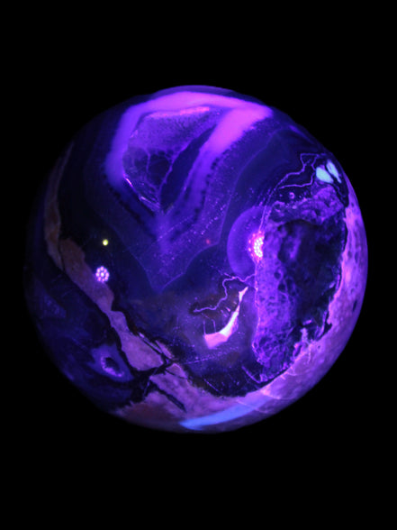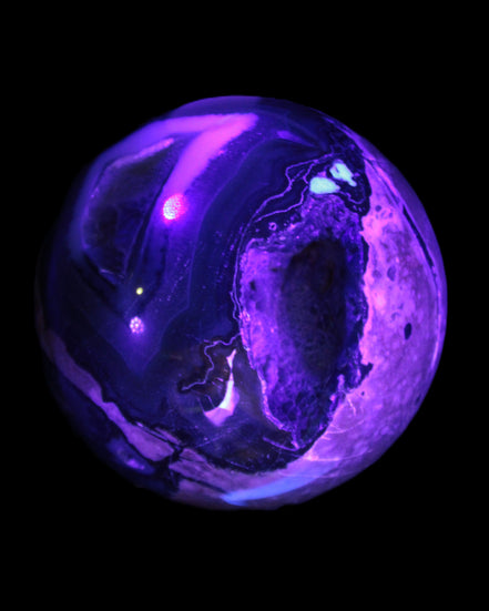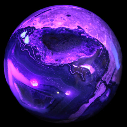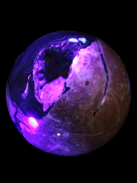 Its unique patterns and striking appearance are due to its volcanic formation and the minerals present in the lava from which the rock formed. It also gives it a show of colours in both natural light and UV light that reflect its fiery origins.