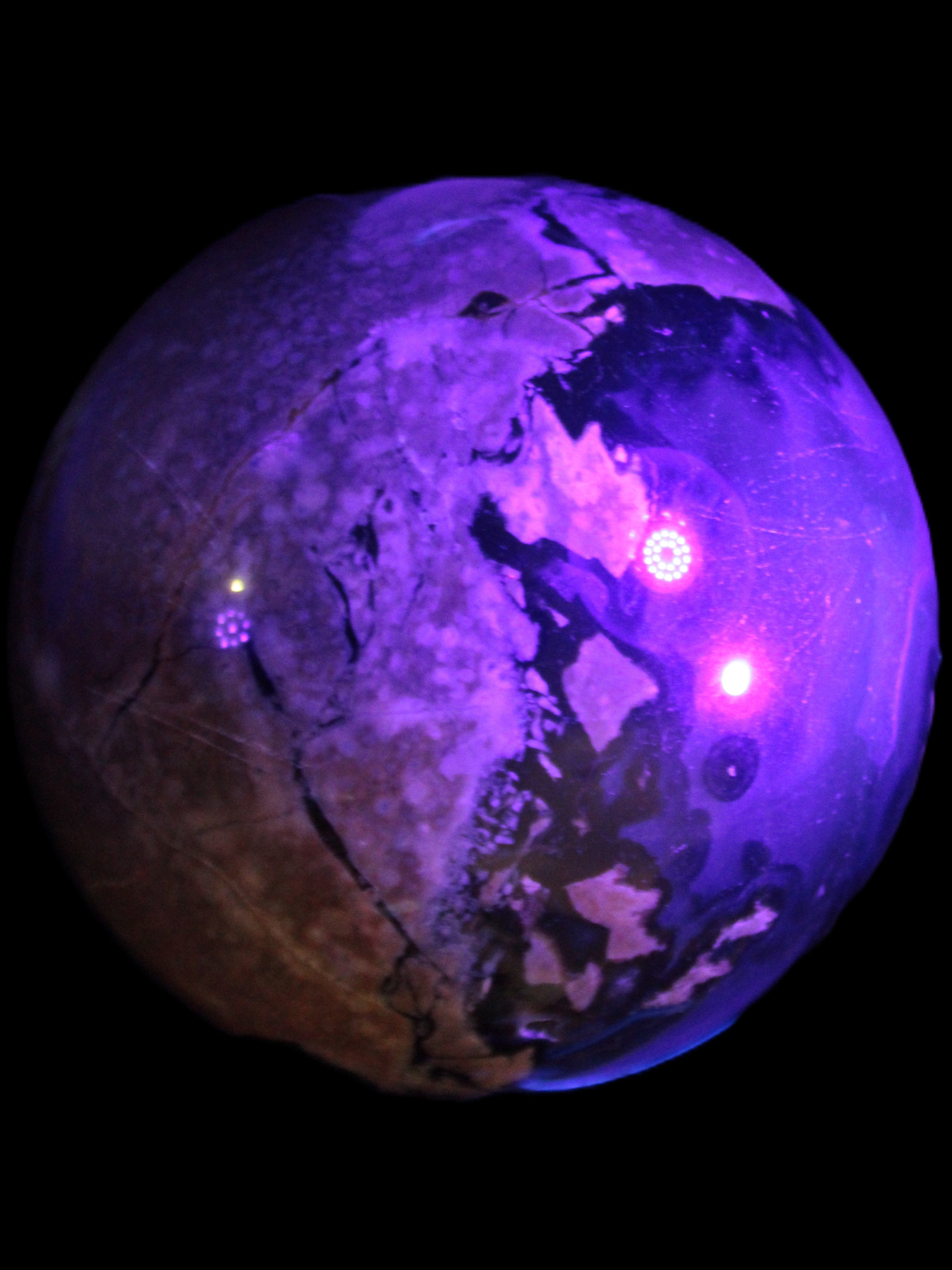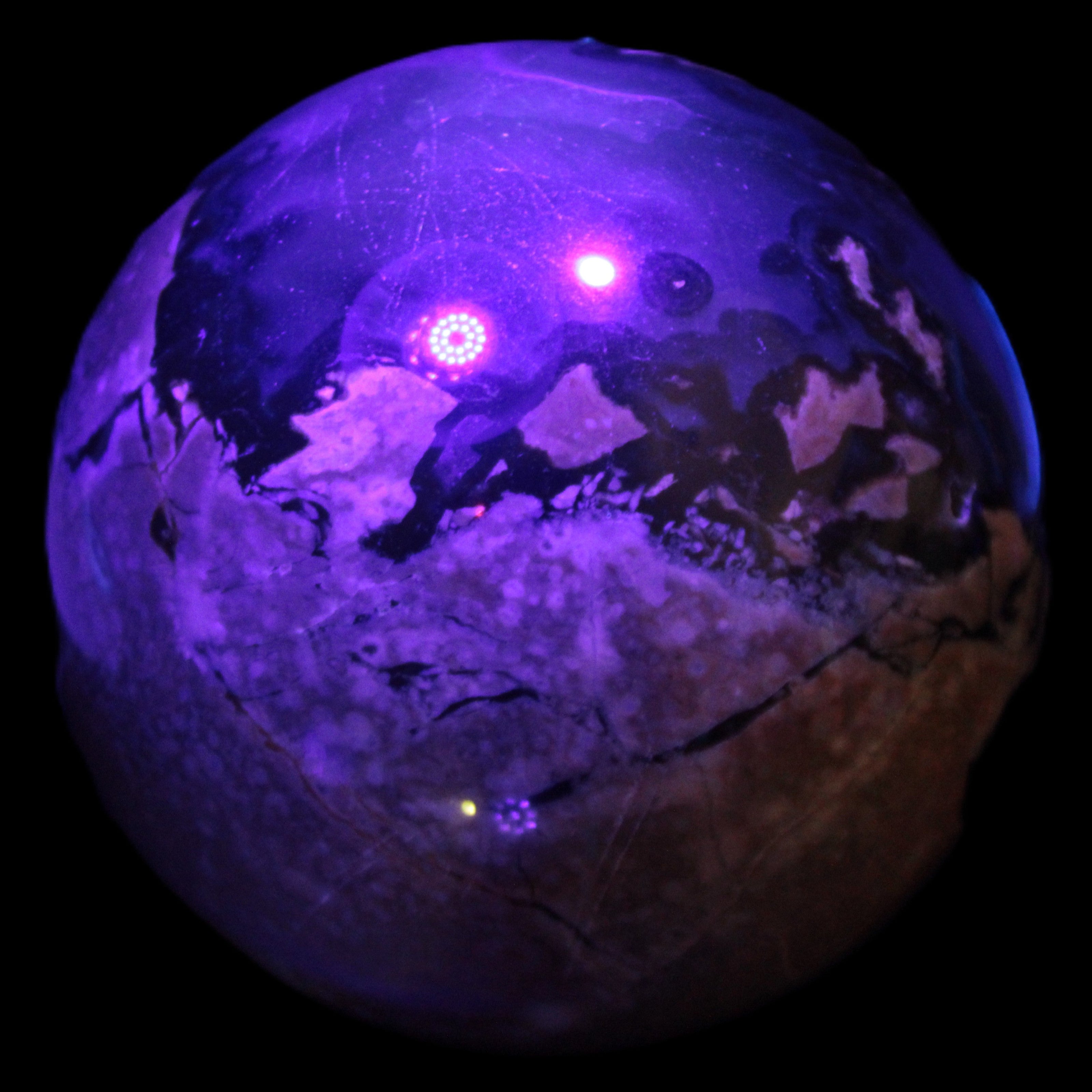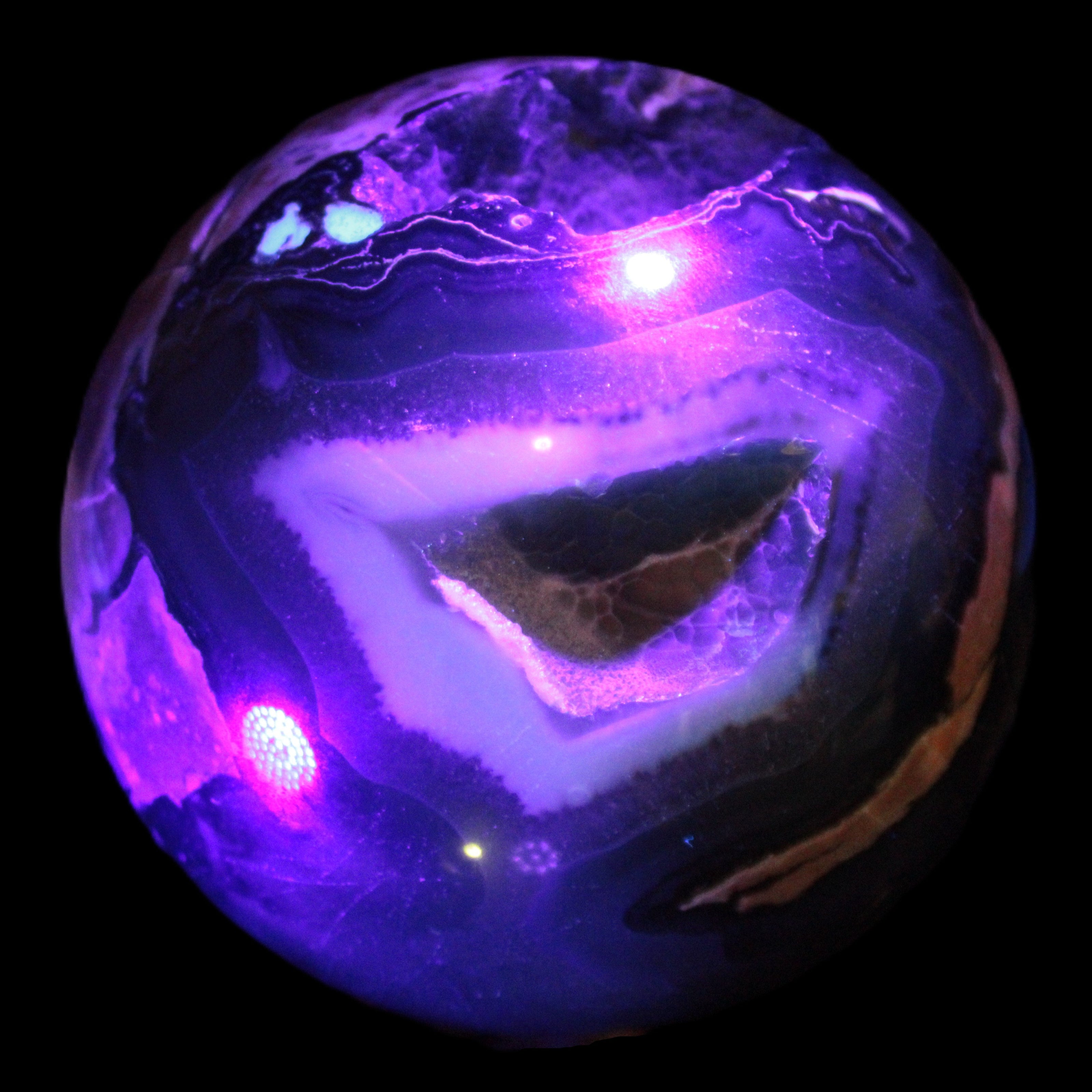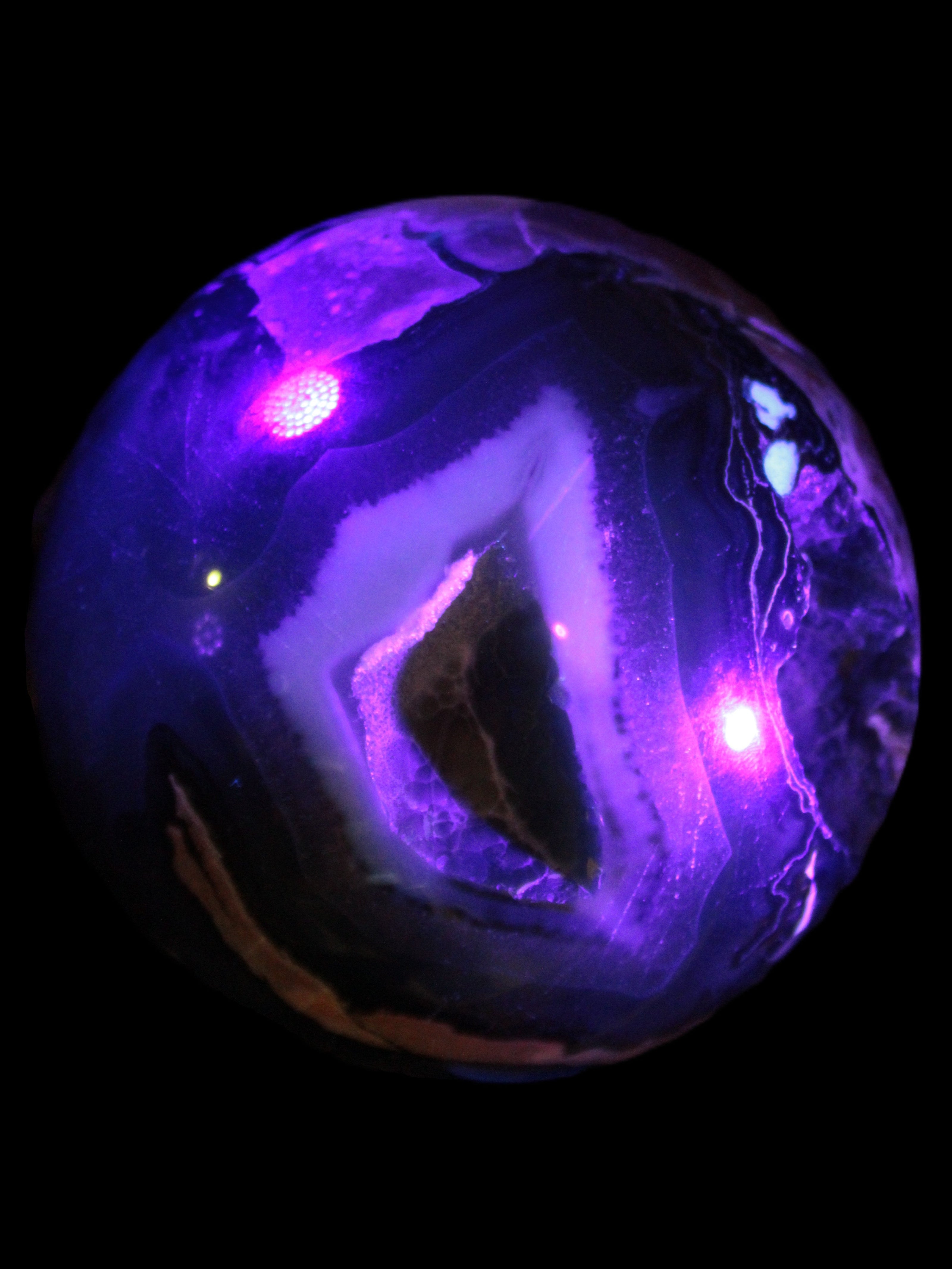Its unique patterns and striking appearance are due to its volcanic formation and the minerals present in the lava from which the rock formed. It also gives it a show of colours in both natural light and UV light that reflect its fiery origins.