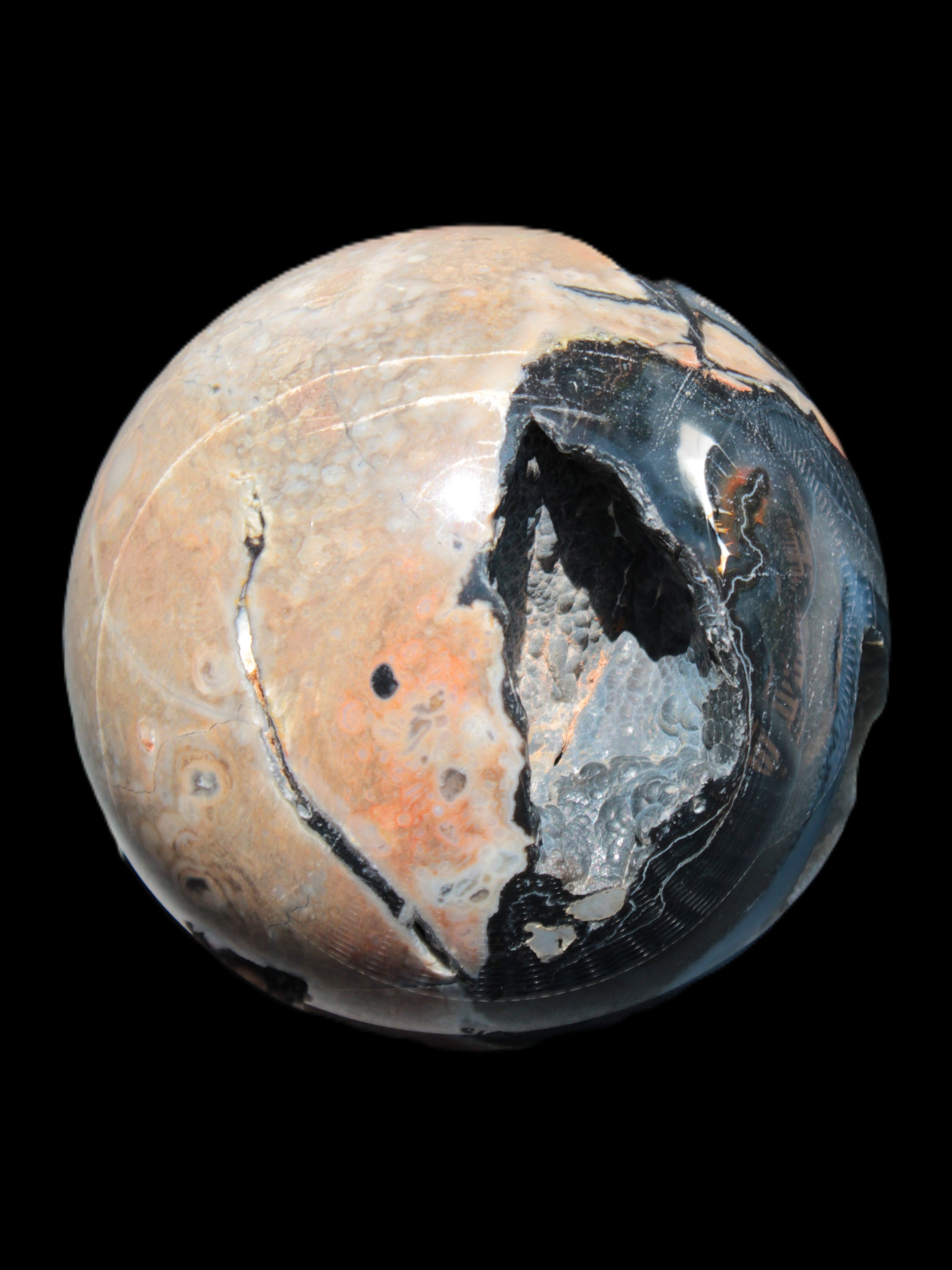Volcano Agate sphere 119mm 2167g in sunlight - Rocks and Things Store
