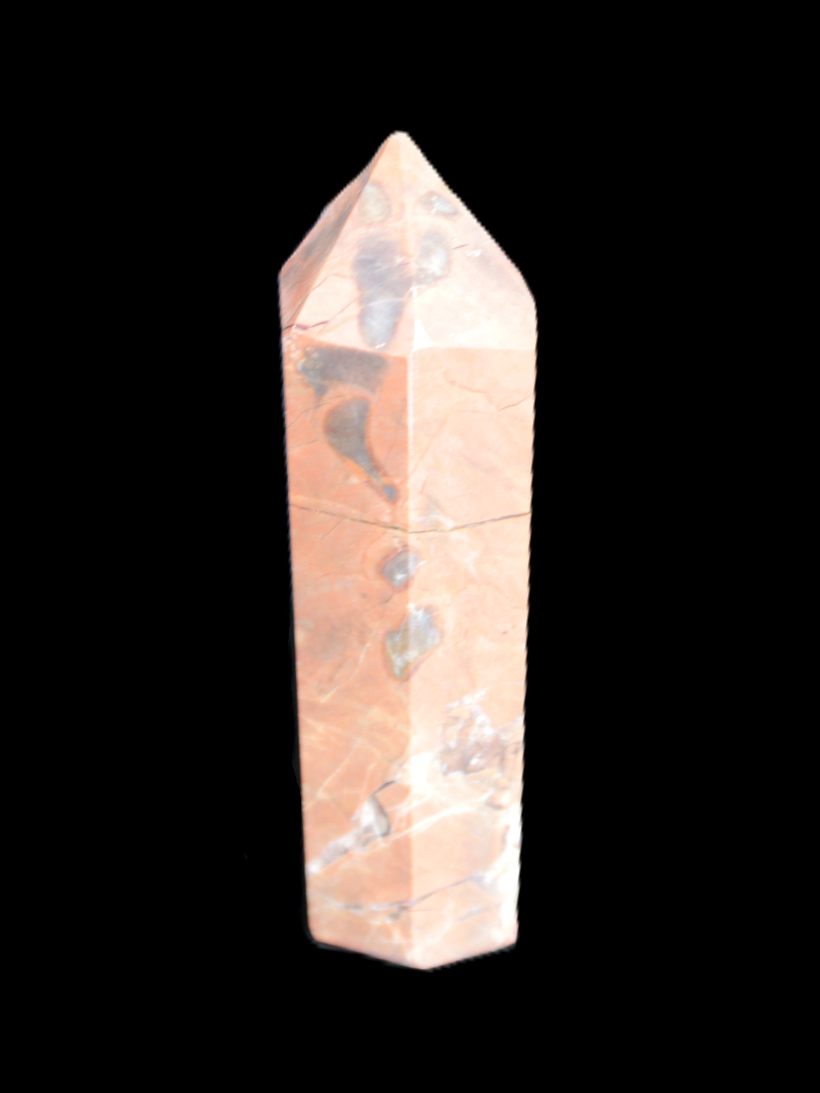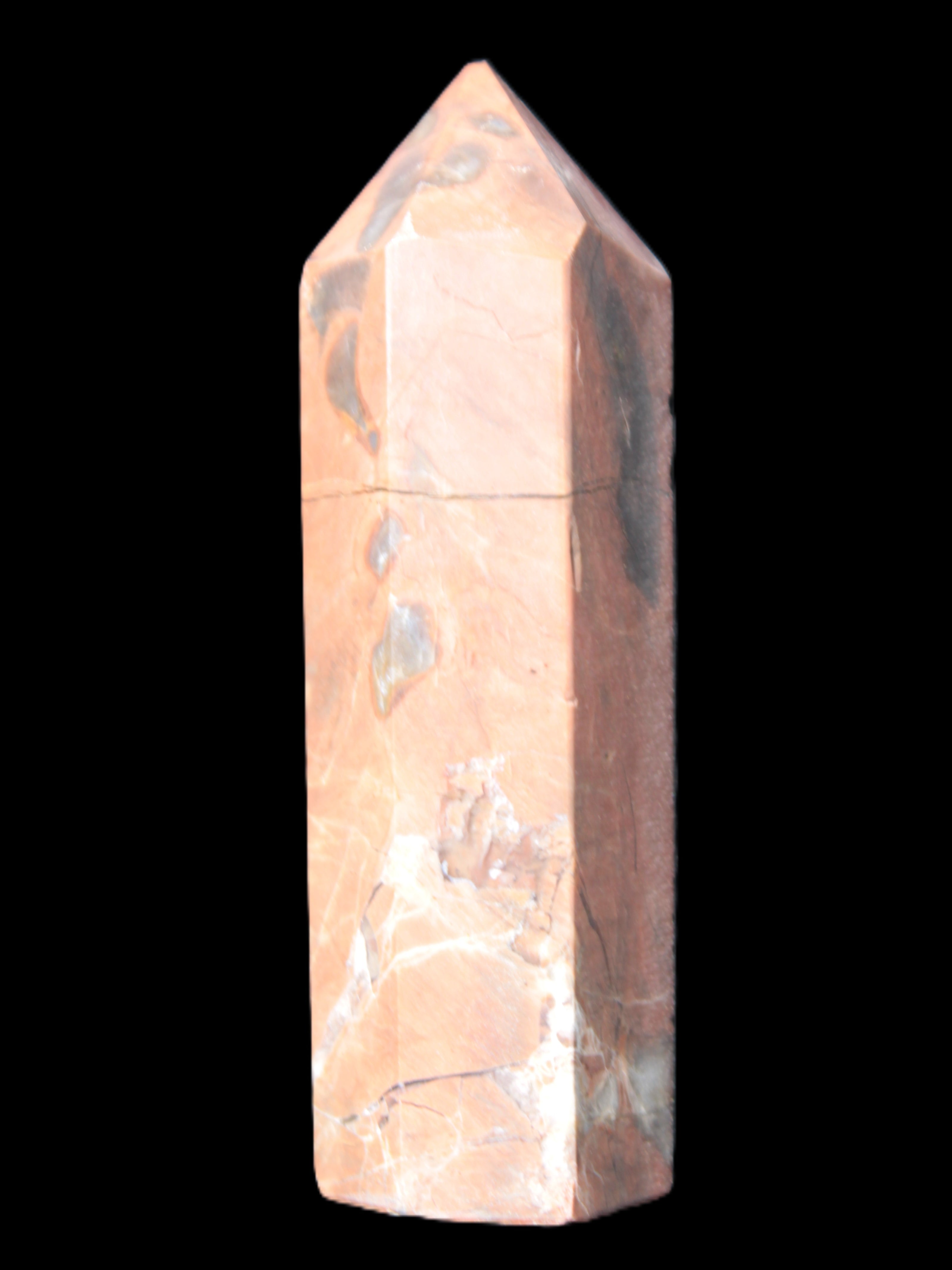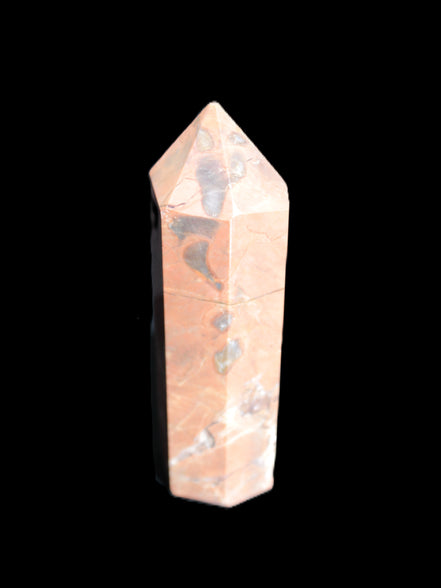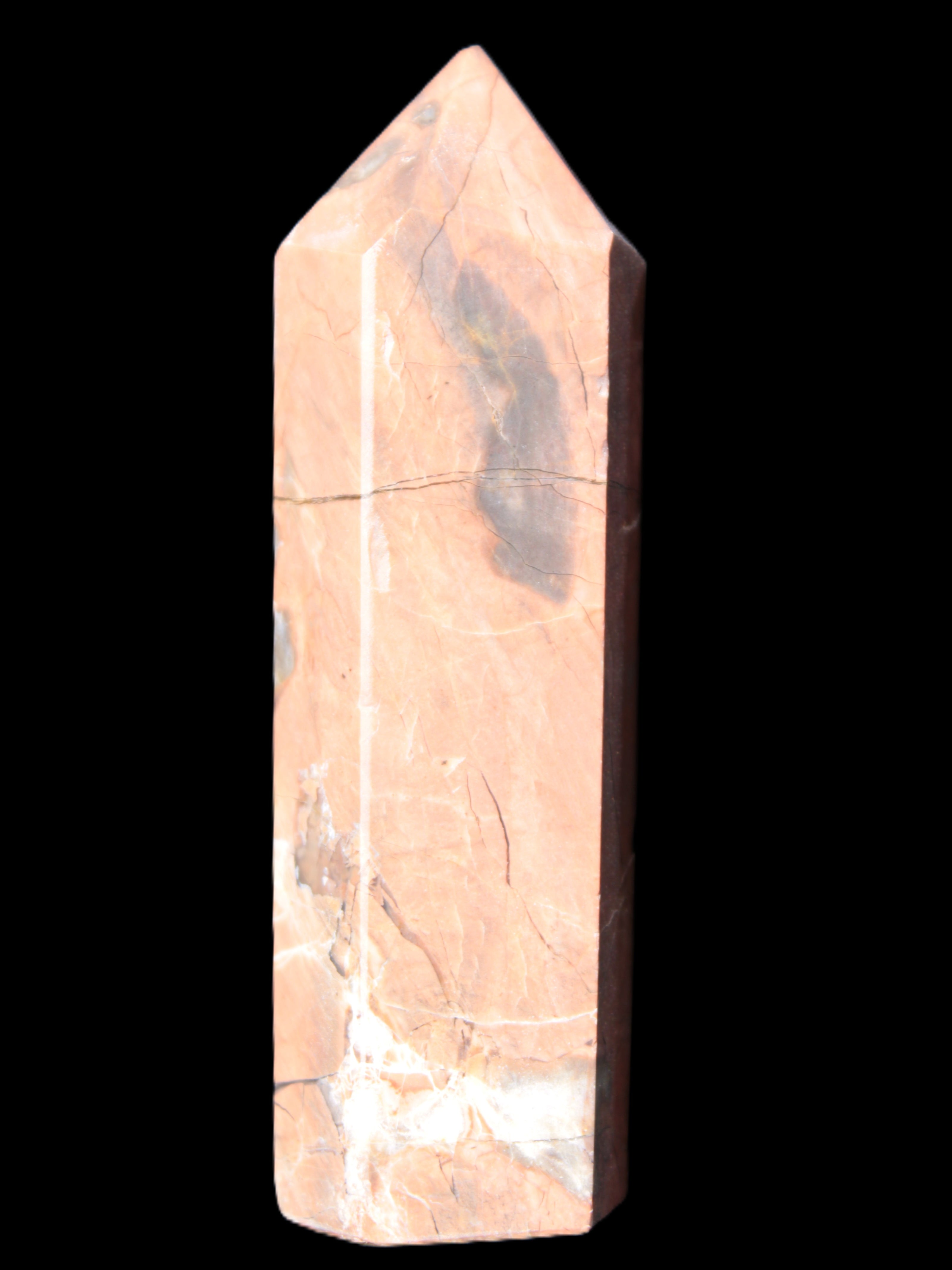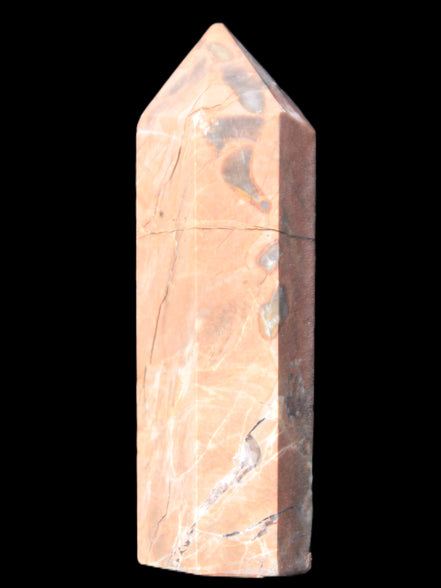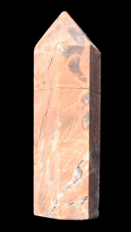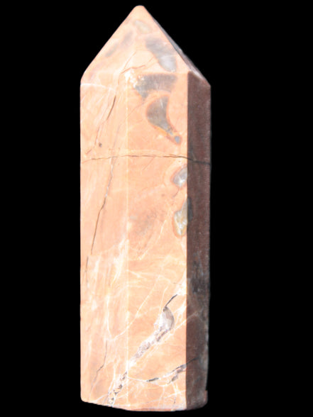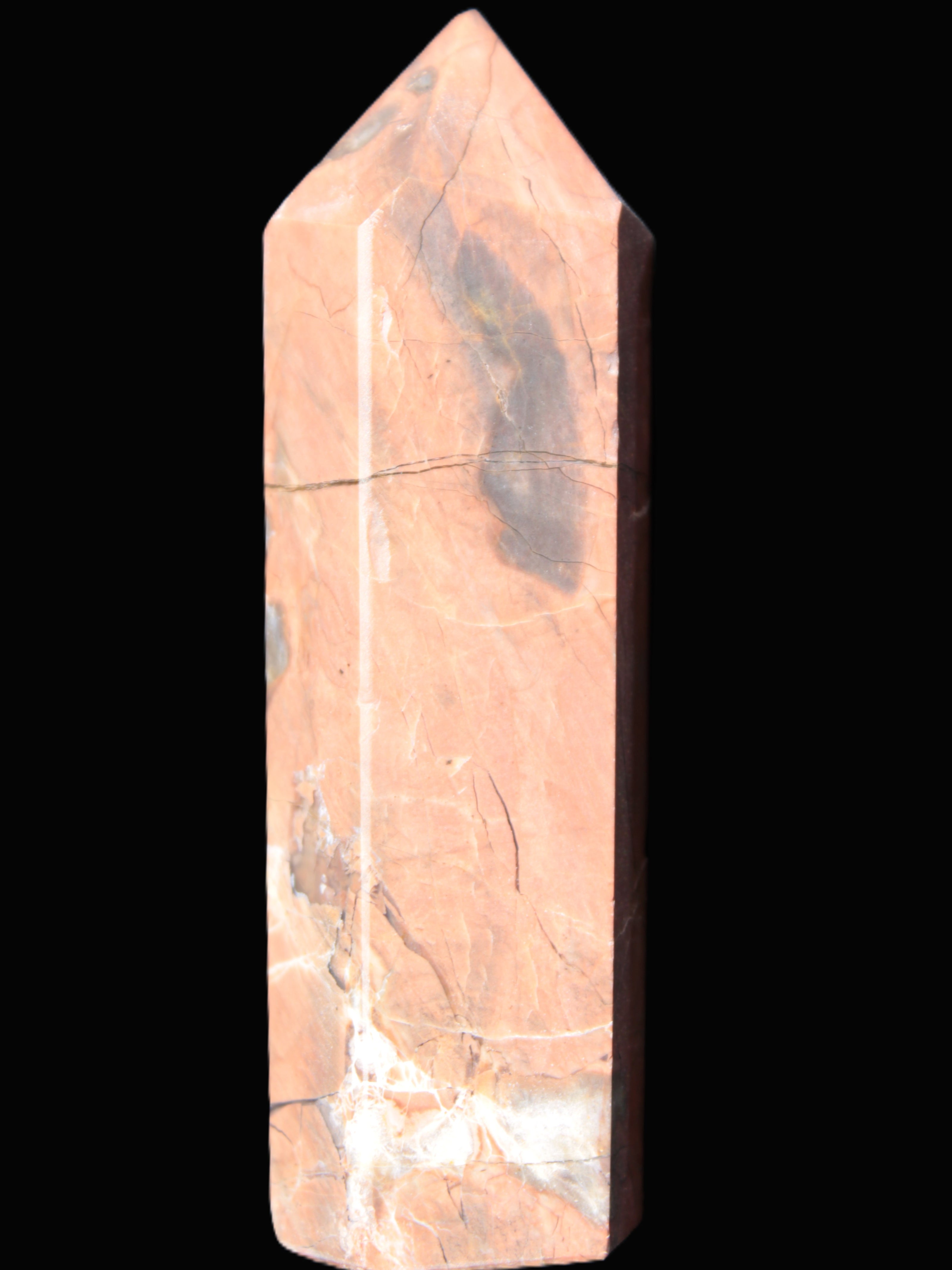 This Volcano Agate obelisk 242g was born in a volcano. forming within a cavity or crevice in the cooling volcanic rocks. This birthplace gives it features that differ from agates that formed in metamorphic or sedimentary rock. One such feature is its reaction to UV light. This fascinating wand is 22 mm wide at the base and stands 80mm tall.