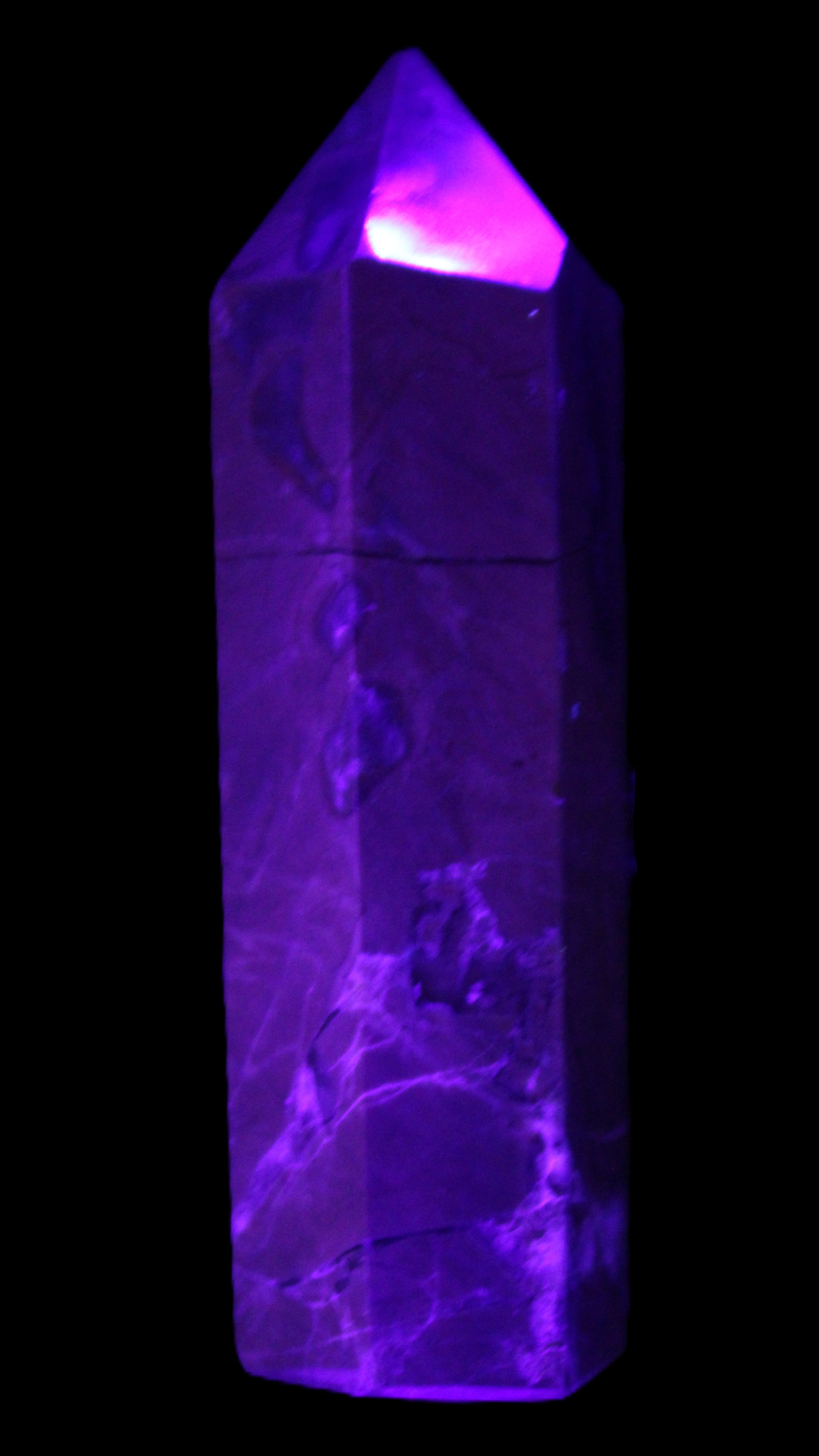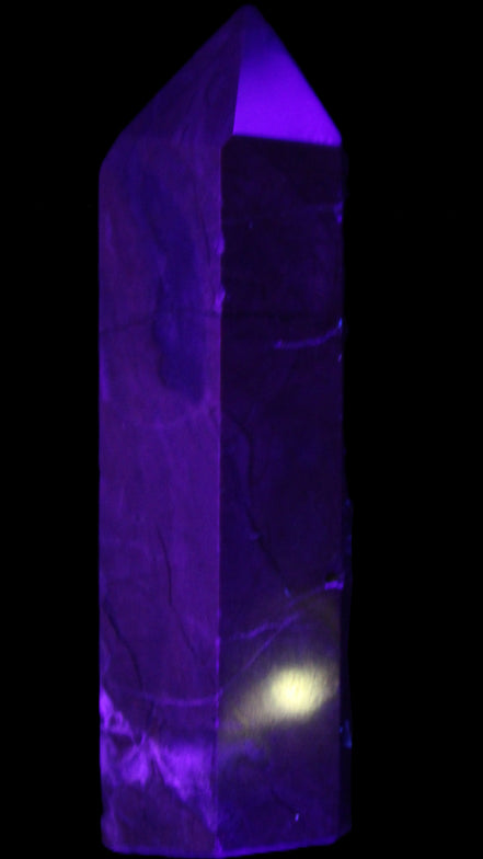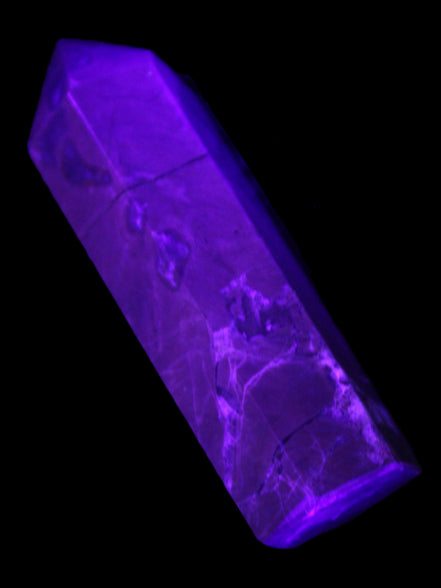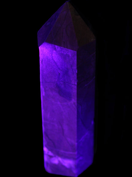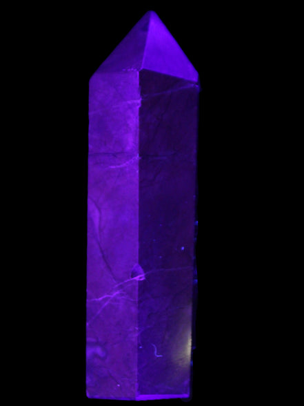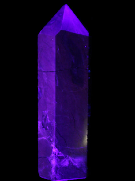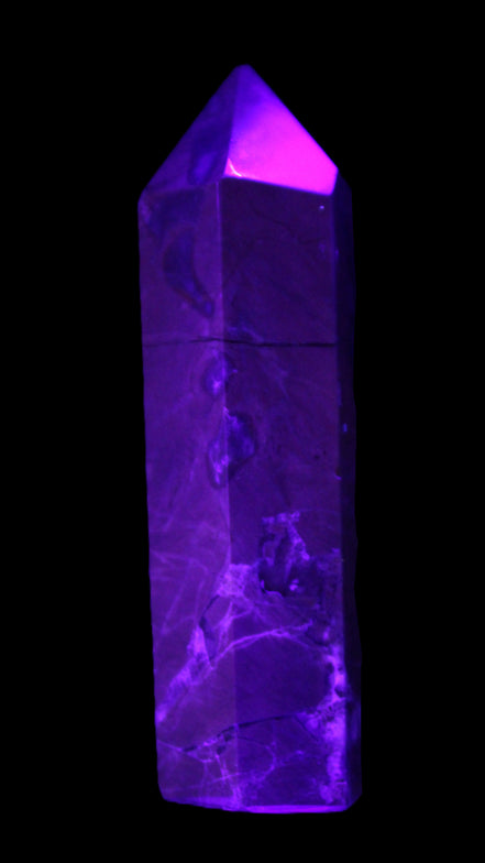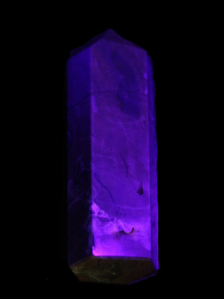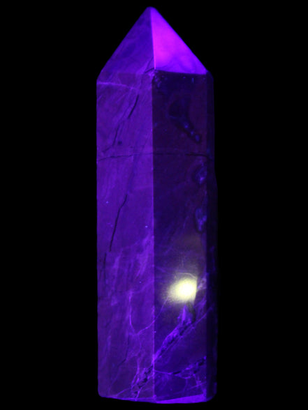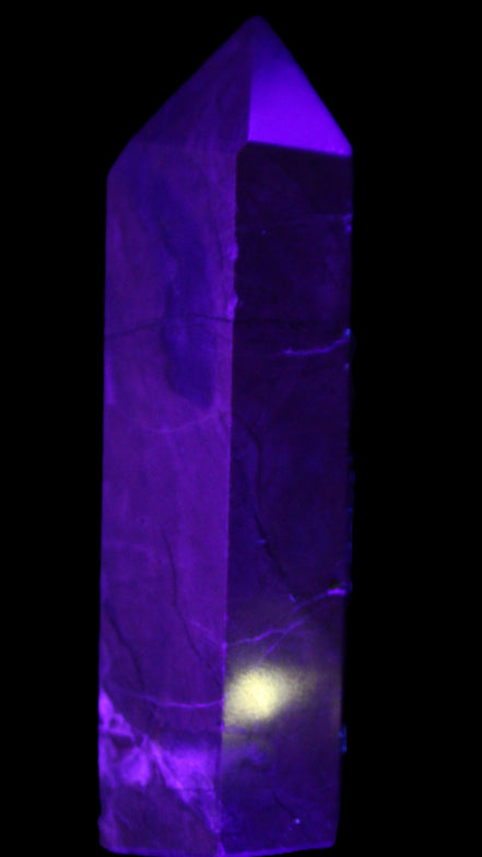 This wand has dark patterns and colors due to the volcanic activity and minerals found in the lava from which the Agate formed. Its appearance in natural light and particularly ultra-violet light reflects its origins.