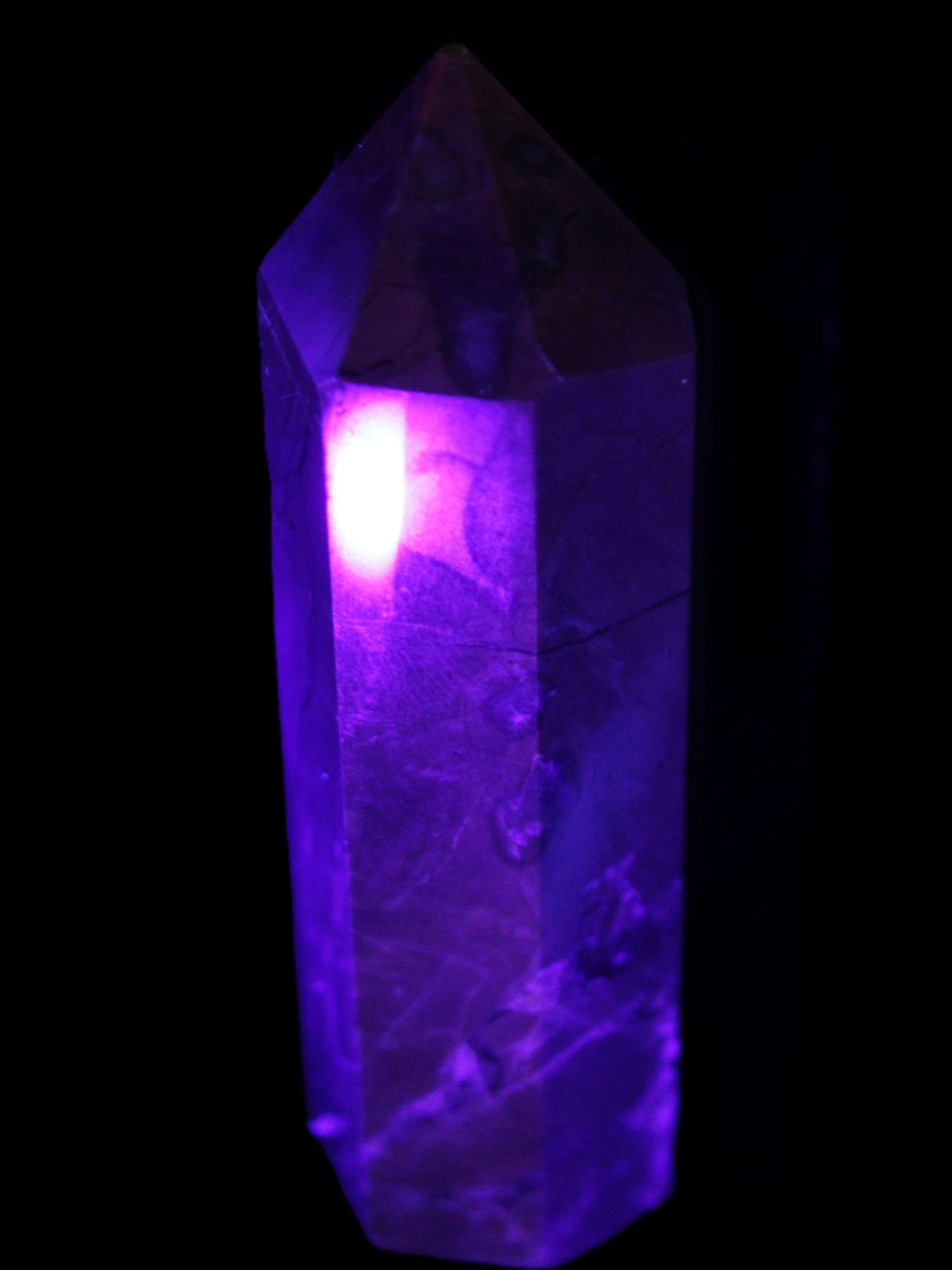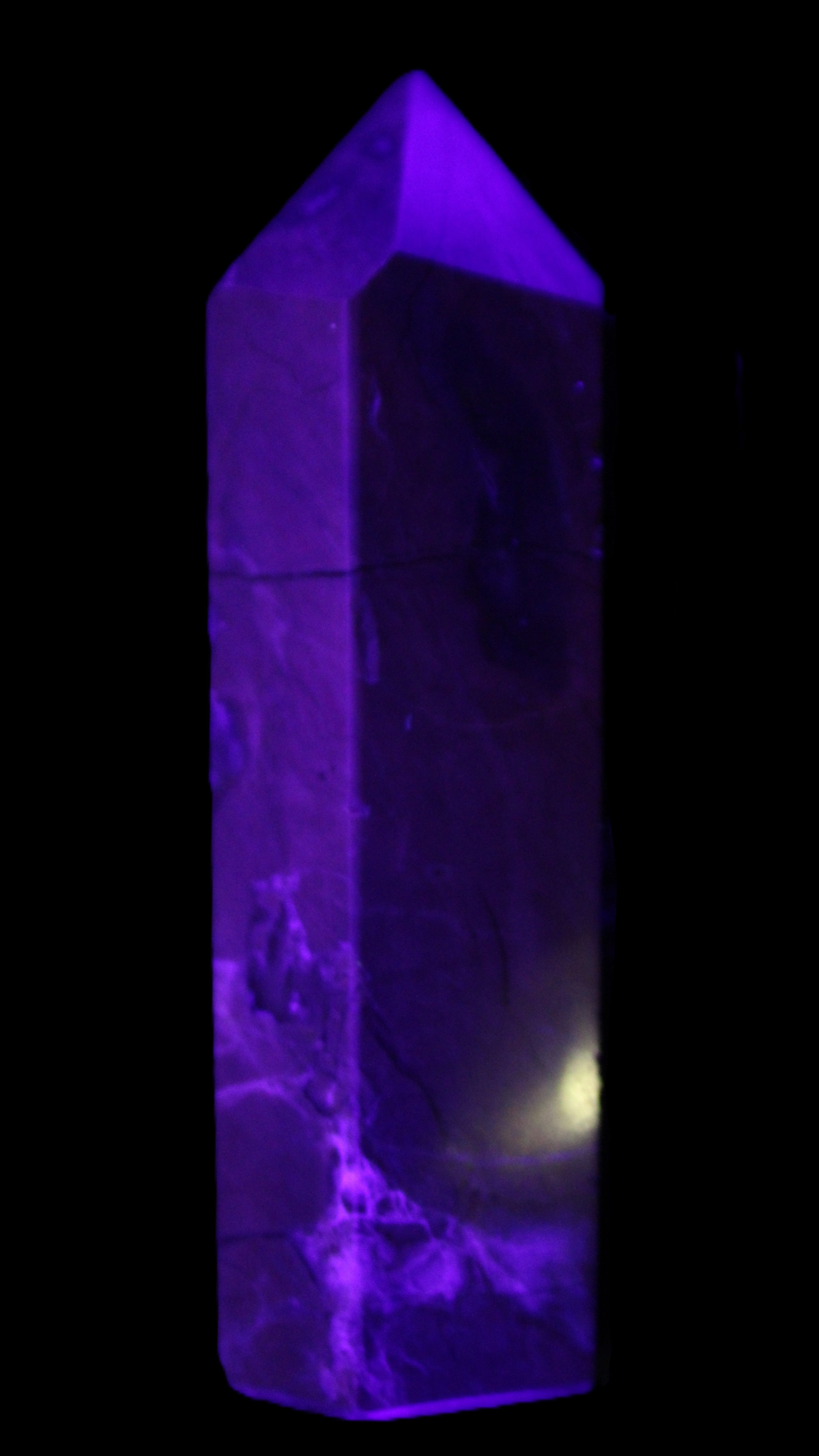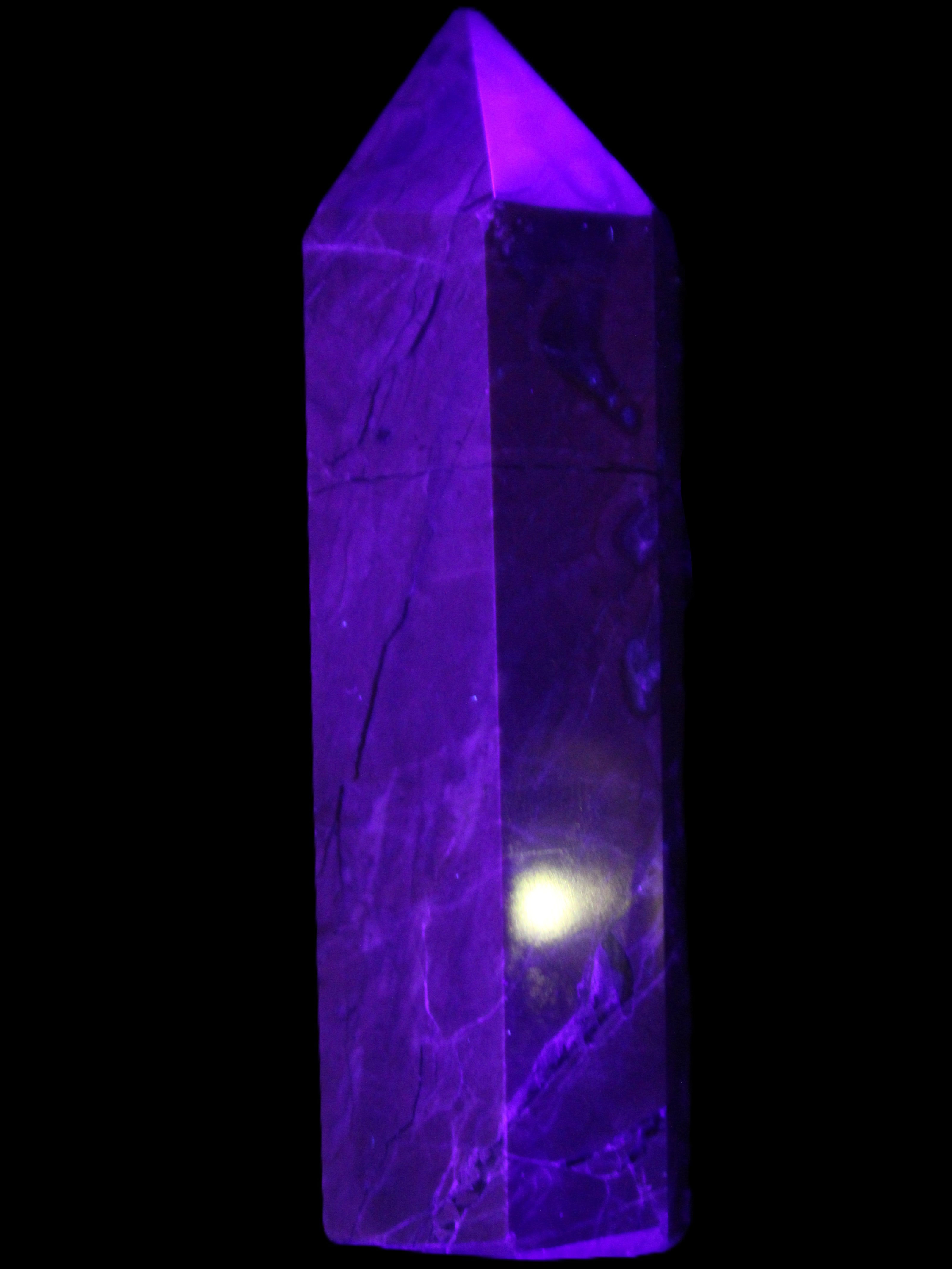 This wand has dark patterns and colors due to the volcanic activity and minerals found in the lava from which the Agate formed. Its appearance in natural light and particularly ultra-violet light reflects its origins.