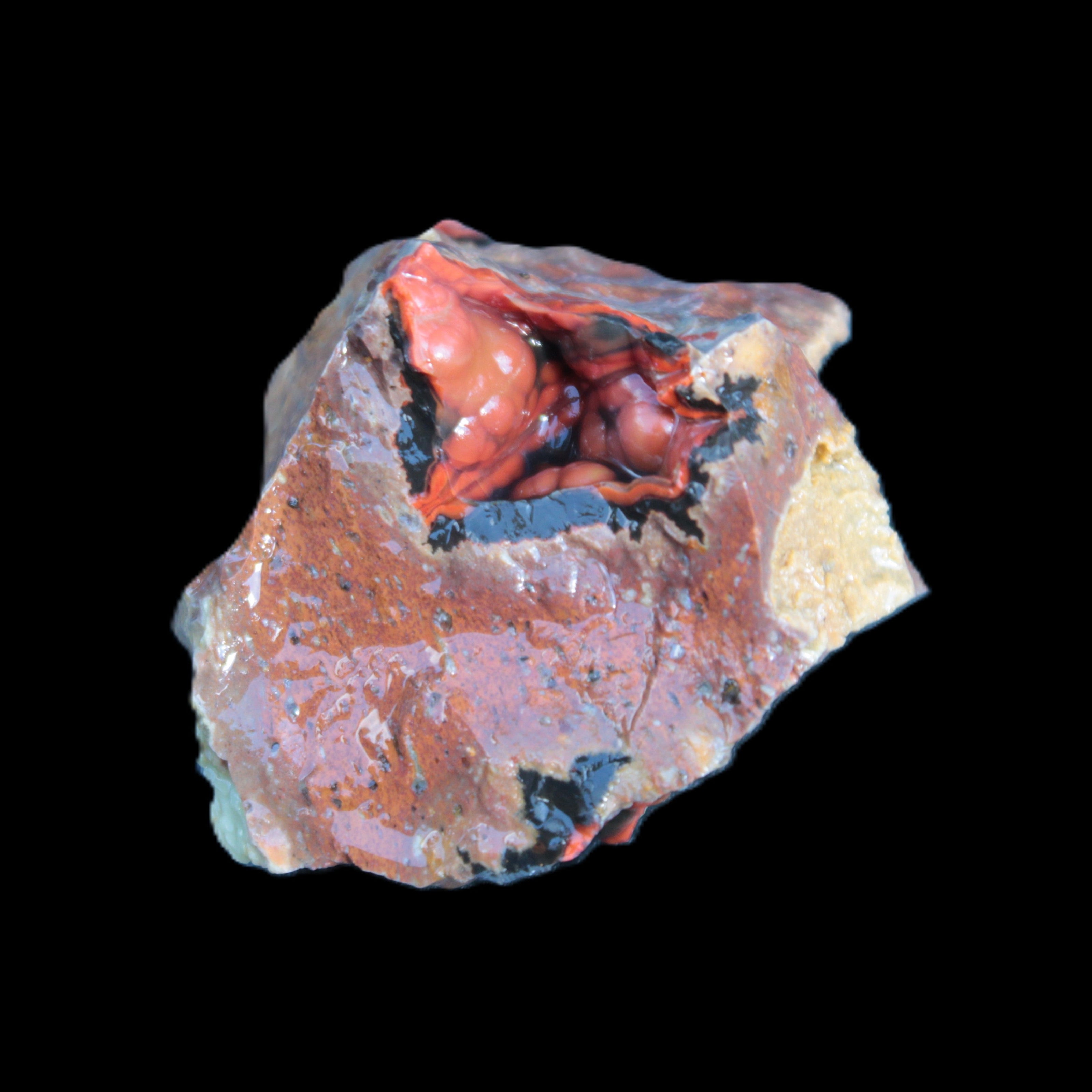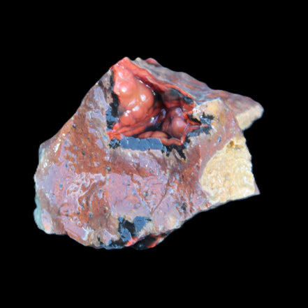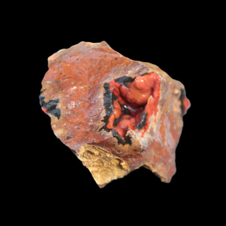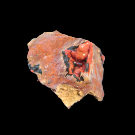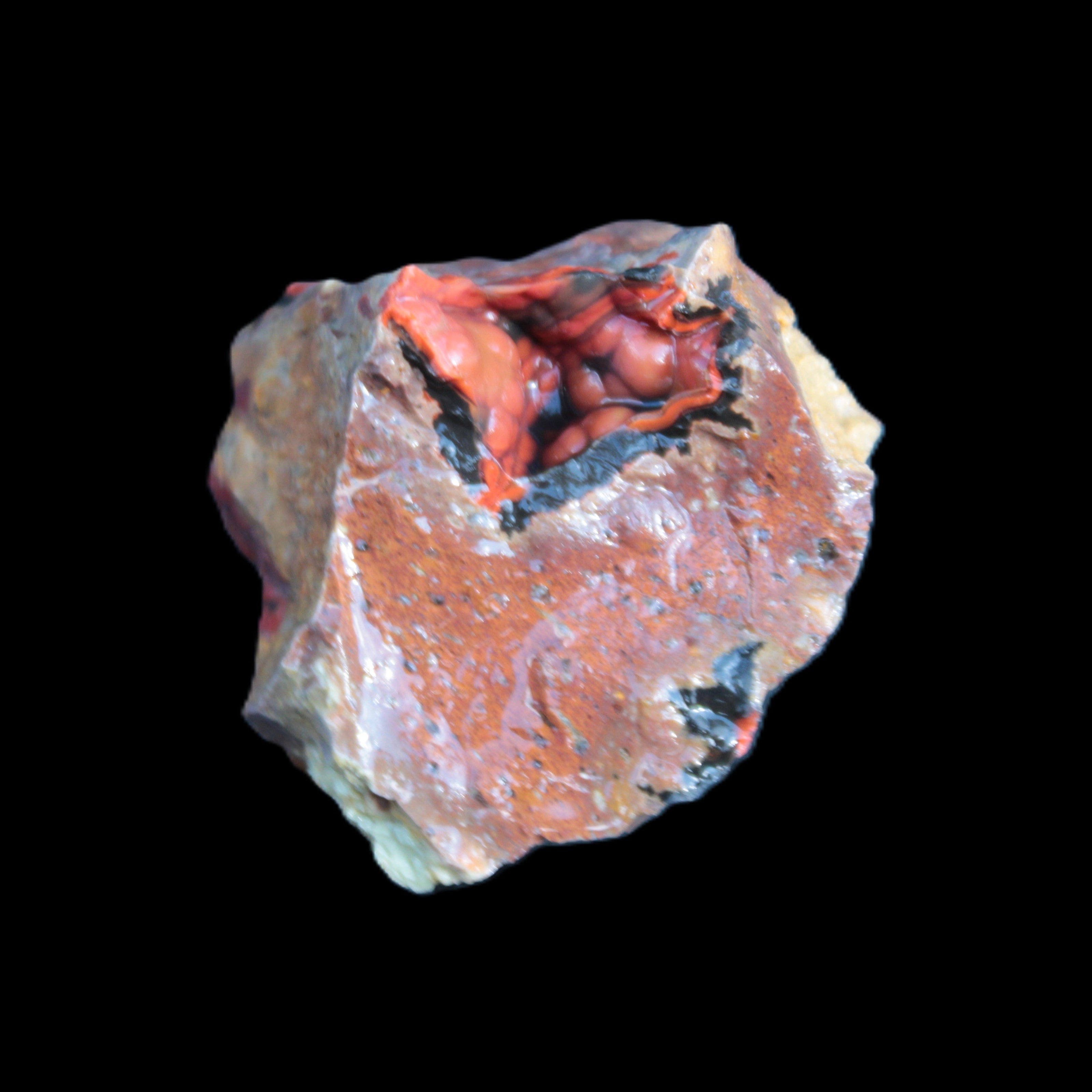 This natural Warring State drusy geode Agate 65*39*47mm weighs 107g. Warring States Carnelian Agate is highly prized. The stones are sourced from Liaoning province in China. They are not antique stones from the Warring States period (475 – 221 BC). They are named for the resemblance to a material found in tombs of that period. It has a strong red orangey colour, with intricate patterns.