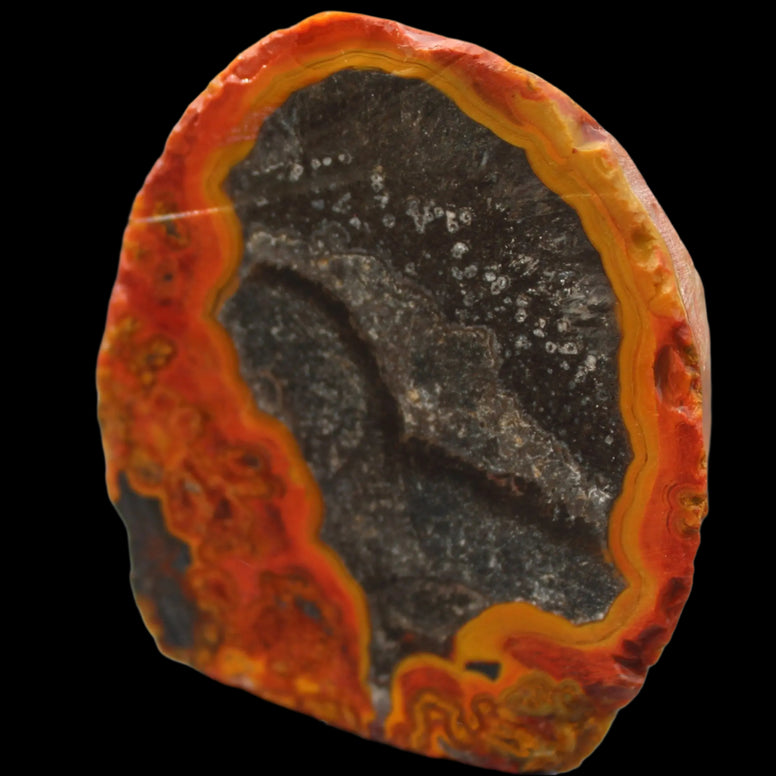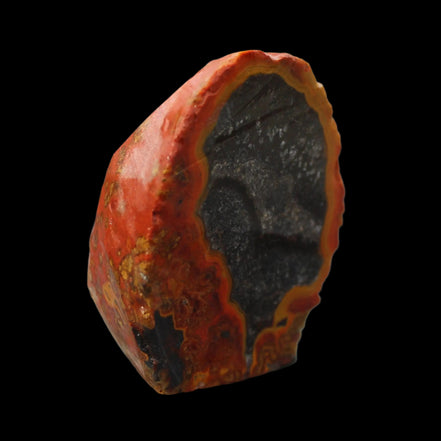 This Warring States Red Agate from China weighs 103g. Warring States Carnelian Agate is highly prized. The stones are sourced from Liaoning province in China. They are not antique stones from the Warring States period (475 – 221 BC). They are named for the resemblance to a material found in tombs of that period. It has a strong red orangey colour, with intricate patterns.