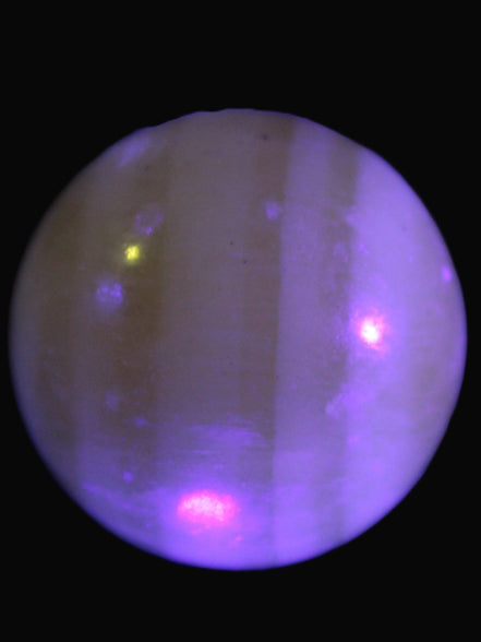 This Yellow Calcite sphere from Iceland weighs 210g. This is an example of the Spar crystal found in Iceland. It is UV reactive.
