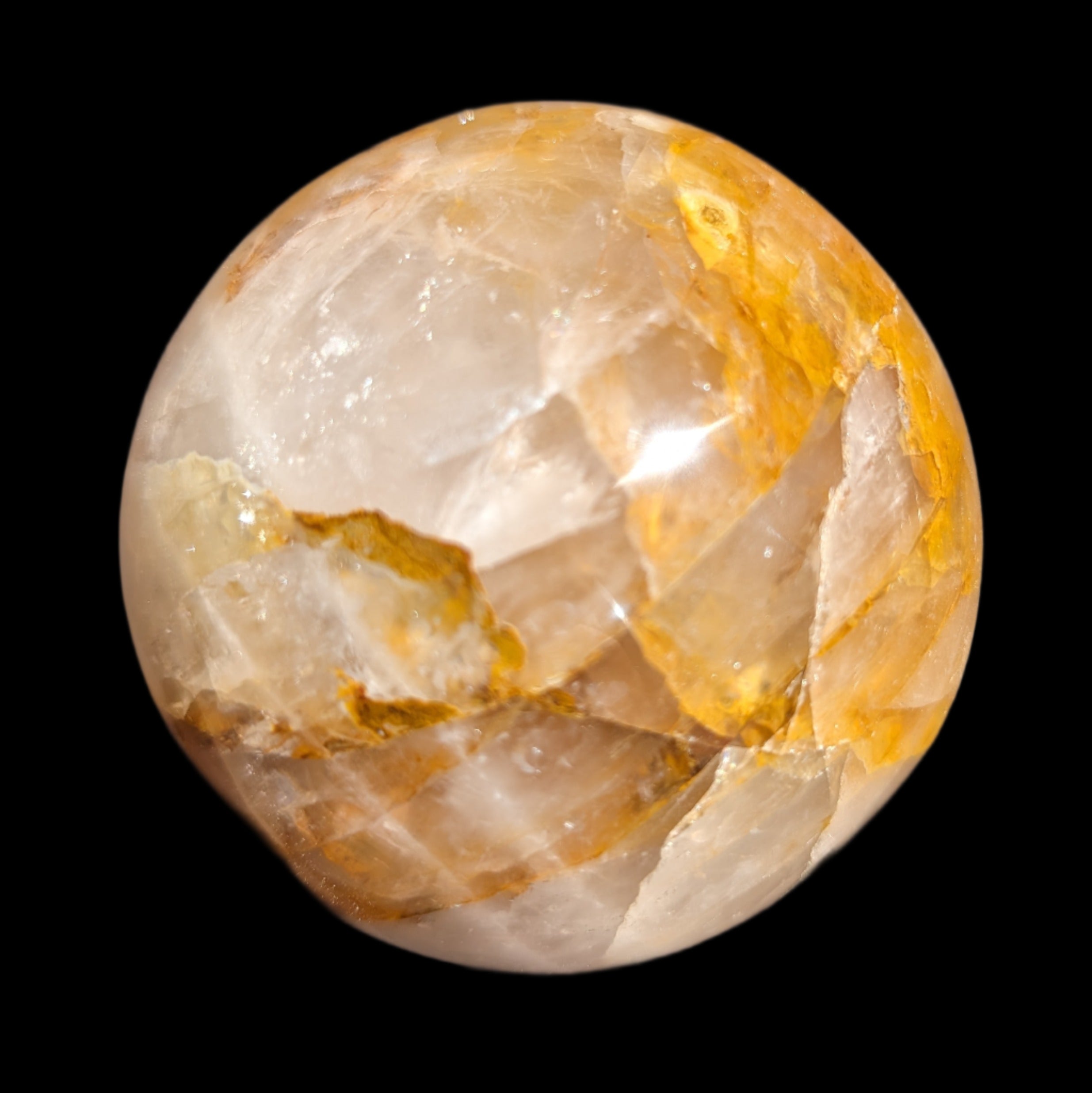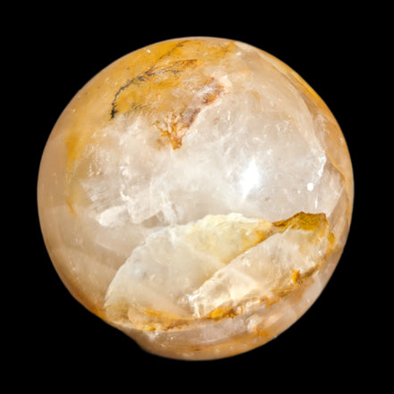 The Yellow flower Calcite sphere from Madagascar weighs 436g. Calcite is a highly abundant and diverse mineral known for its soft energy and amplifying properties. It enhances learning, removes stagnant energy, and supports emotional and spiritual development.