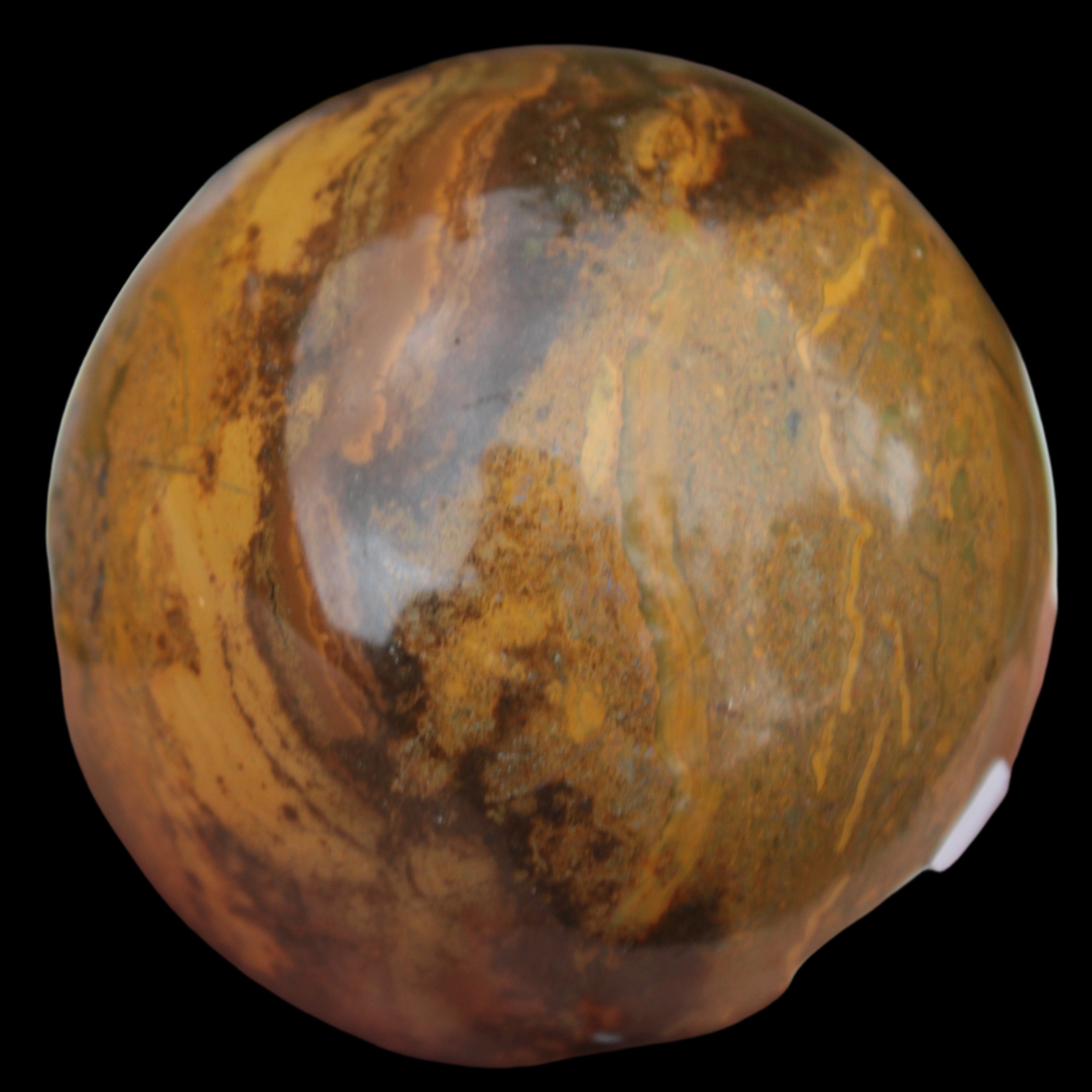 This Yellow Jasper sphere weighs 520g. Jasper is a stone of gentleness, comfort and relaxation. It is a stone of protection, absorbing all types of negative energies. Jasper is the supreme nurturer. Its energies bring a soothing sense of joy. Jasper sustains and supports during times of stress. Jasper unifies all aspects of your life, bringing tranquillity and wholeness. Jasper stimulates creativity and imagination, transforming ideas into action. It can help with focus, organisation and the motivation to follow through.