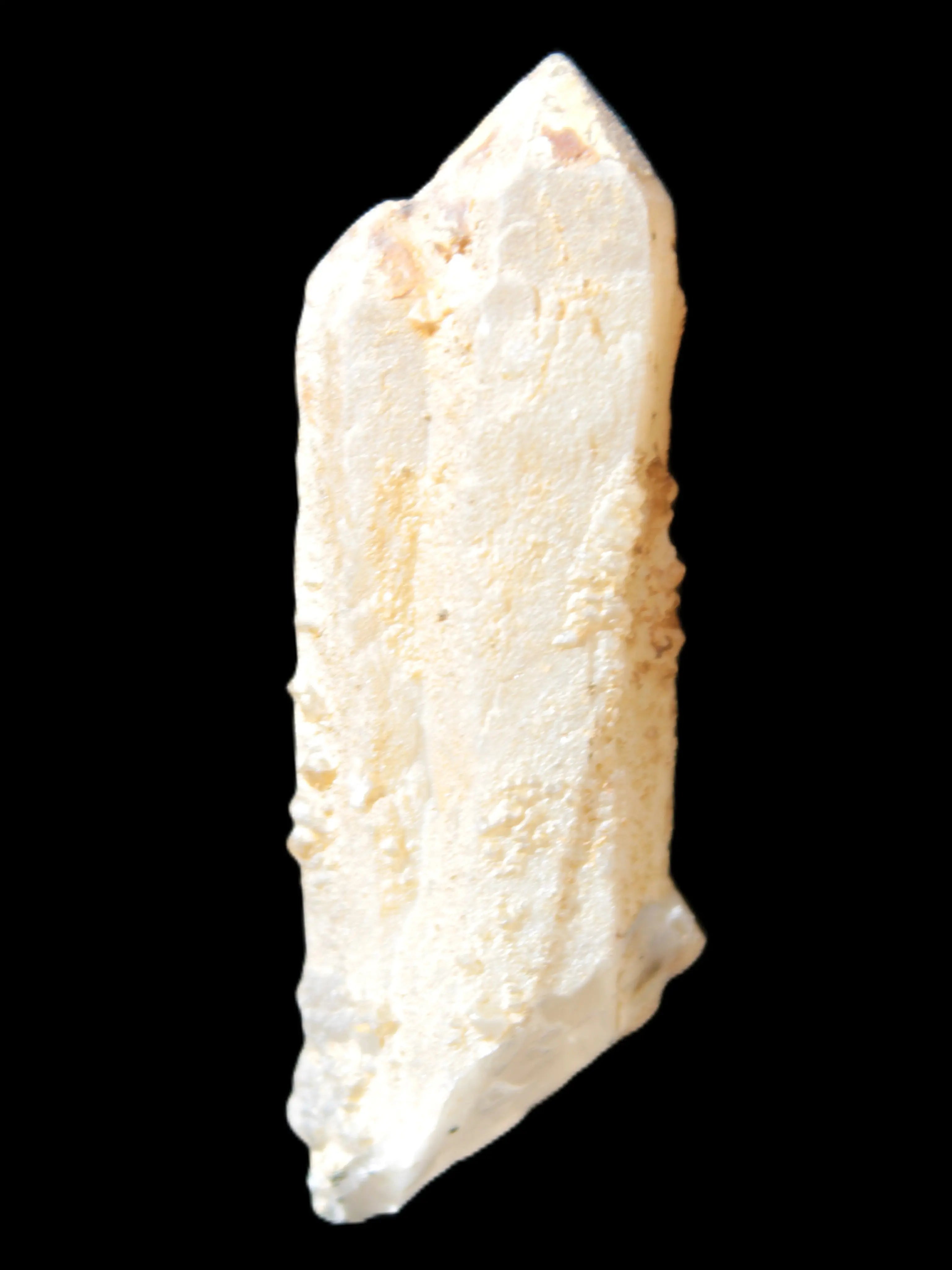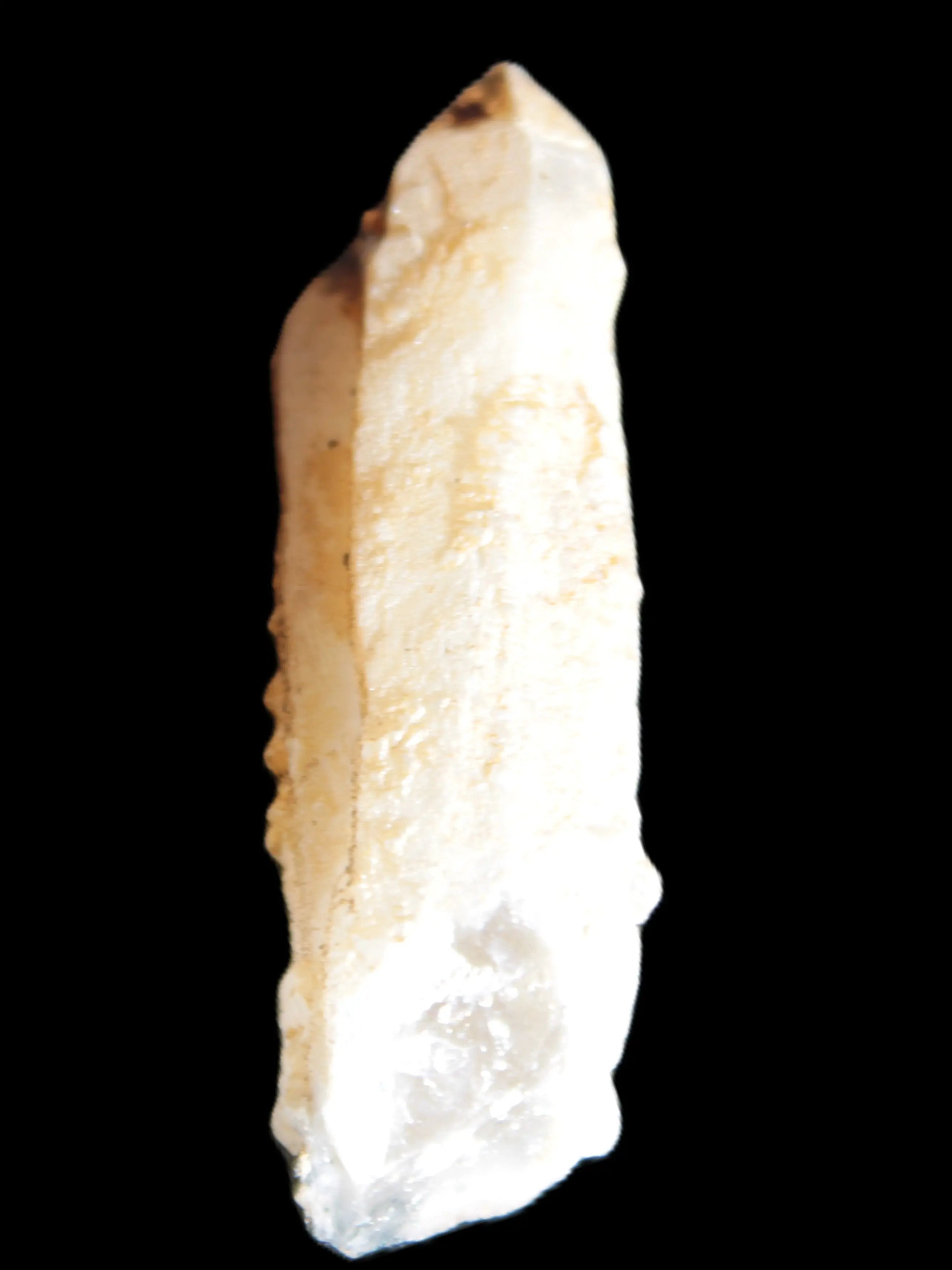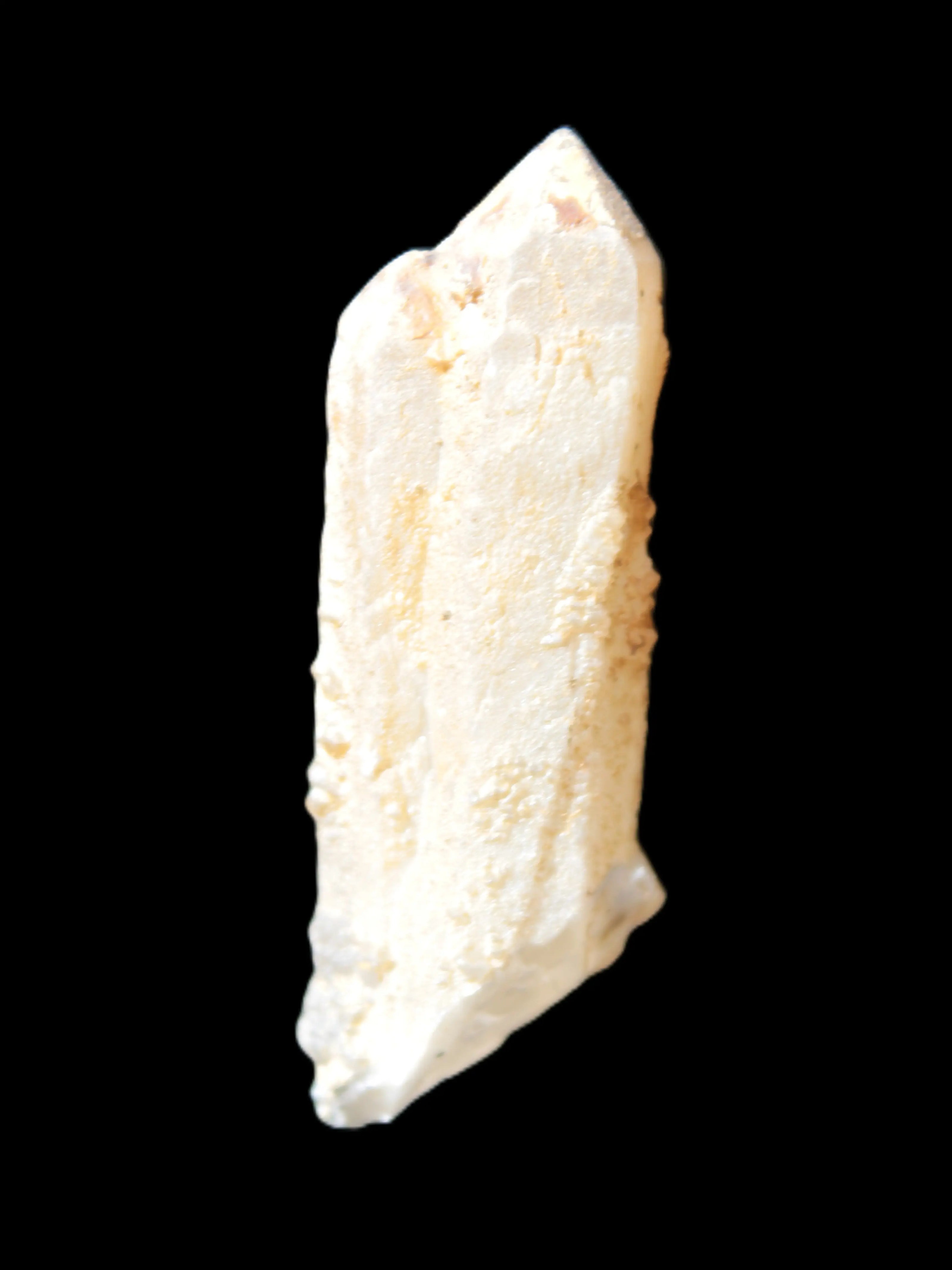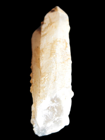This Yellow Quartz natural elestial crystal weighs 9.4g. It is 42mm in length.  This specimen is a great example of a twinned elestial crystal in its natural state. Elestial crystals form in unstable conditions. Unlike this crystal, they are usually composed of Smoky Quartz. More rarely they may be found in Amethyst, Clear Quartz and Citrine. The outer layer is UV reactive.