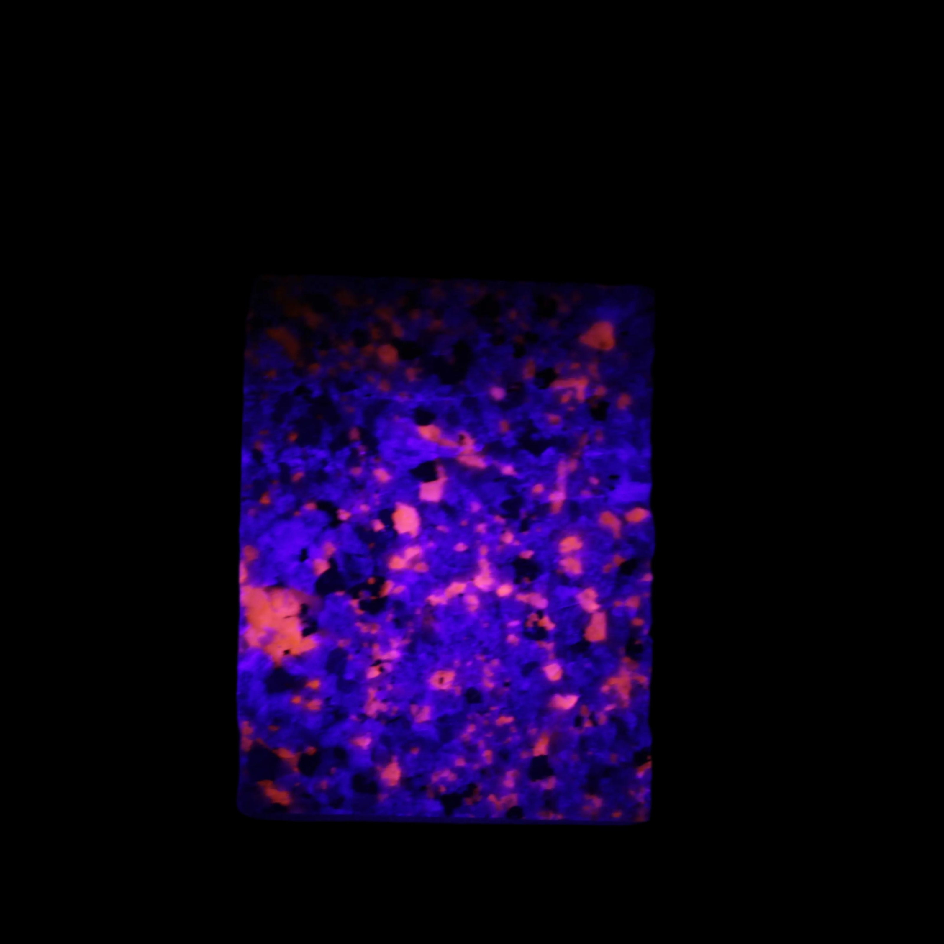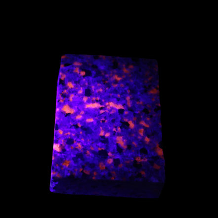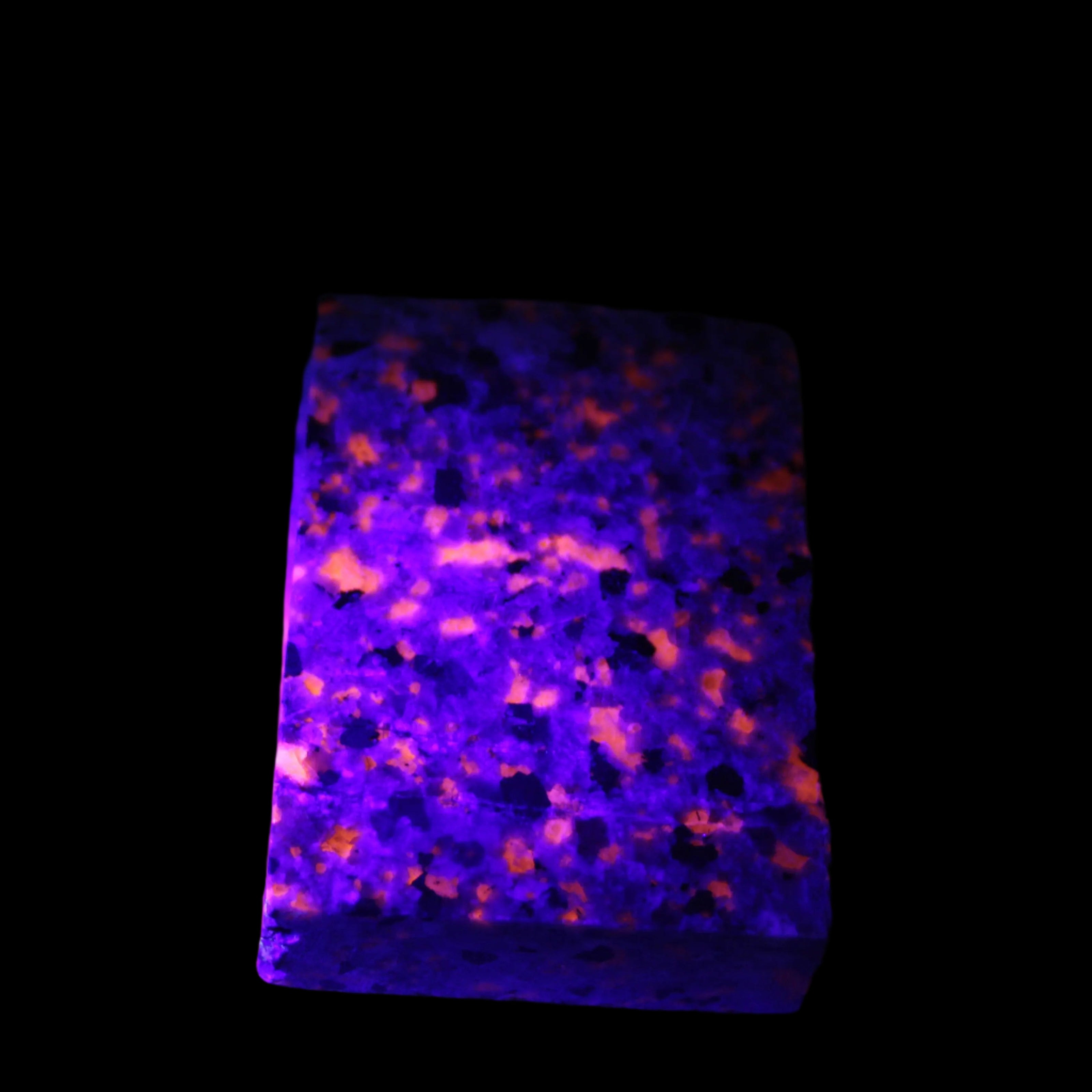 This Yooperlite Lake Superior Sodalite polished specimen weighs 121g. Yooperlite is the trade name for rare Syenite pebbles containing fluorescent sodalite, found in Lake Superior. They are found in glacial deposits, moved to Michigan from Canada. Most Sodalite will fluoresce orange under UV light. Yooperlite fluoresces particularly brightly.