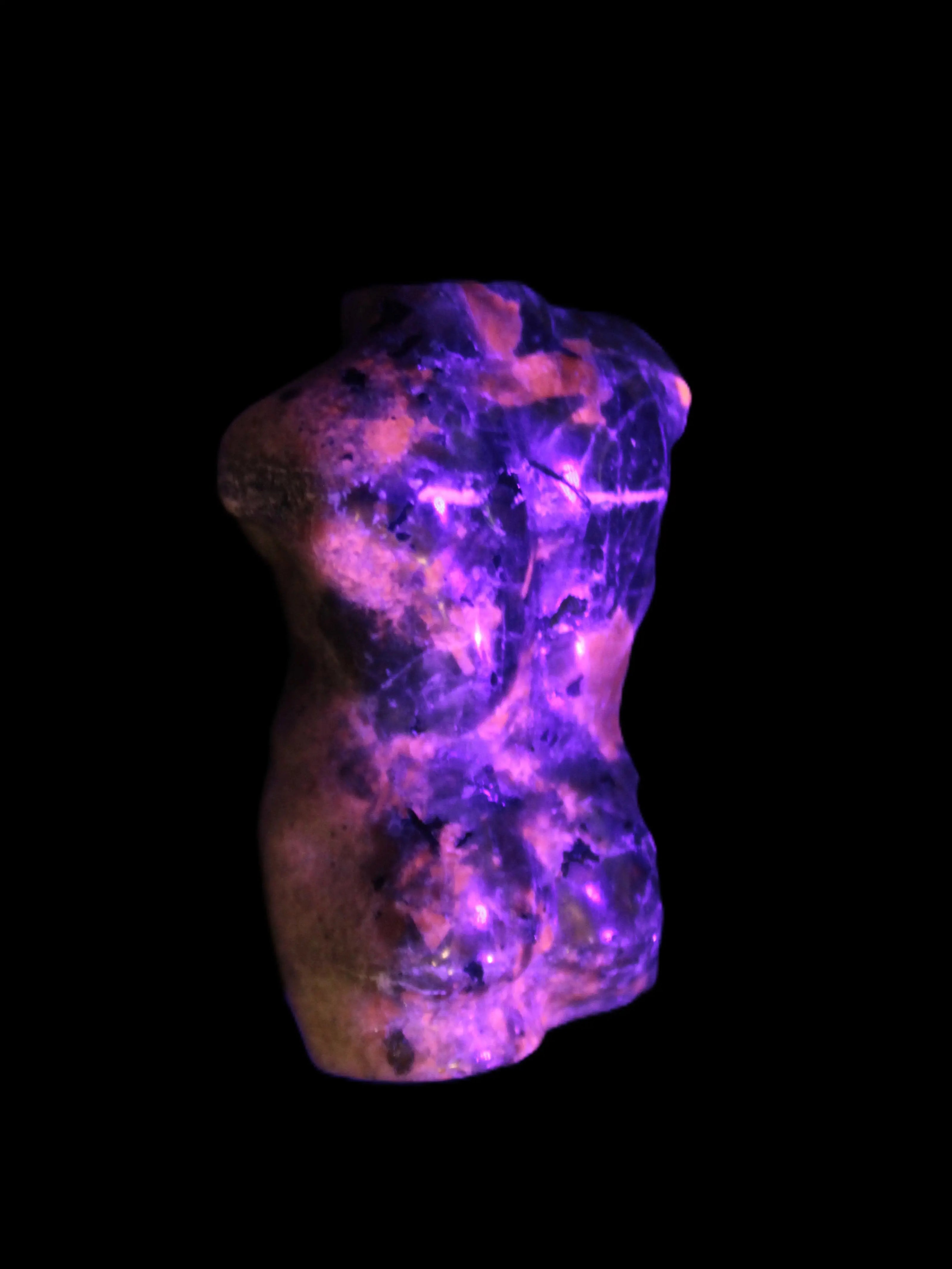 This Yooperlite hand-carved male torso 39*57mm 90gcombines the self-expression properties of Yooperlite with the symbolism of the male figure.