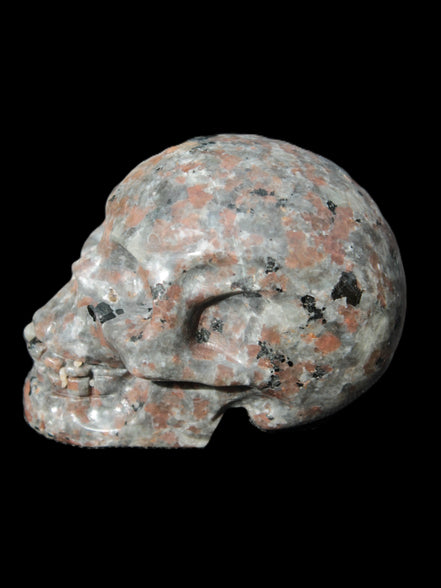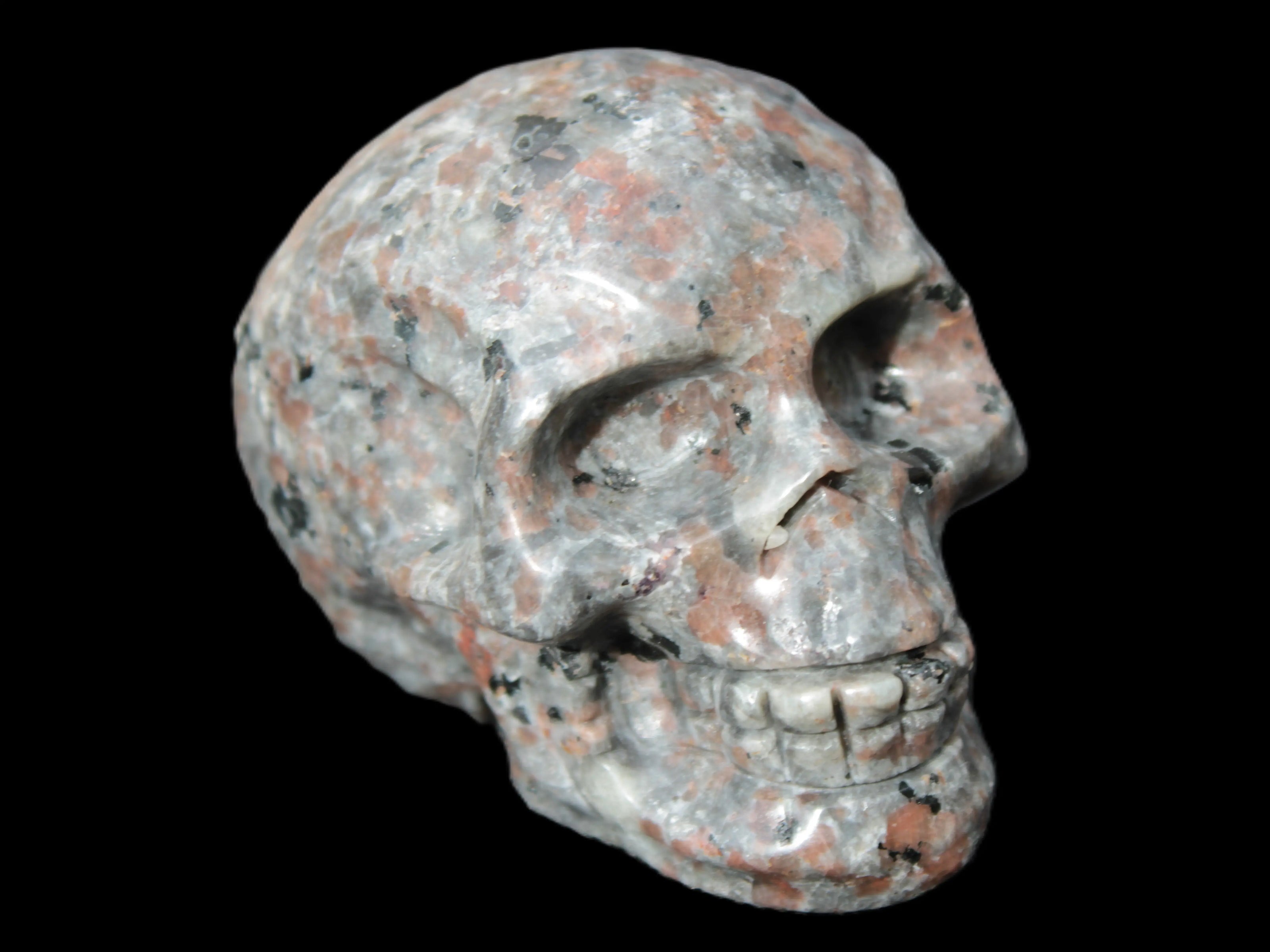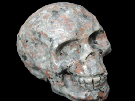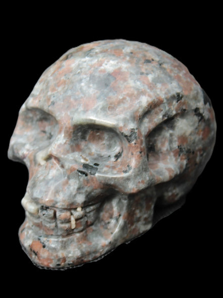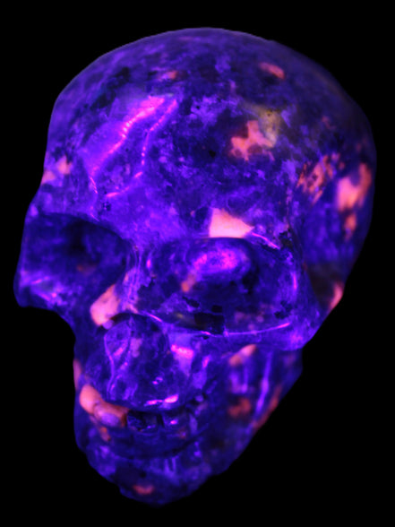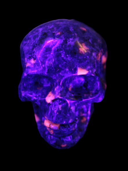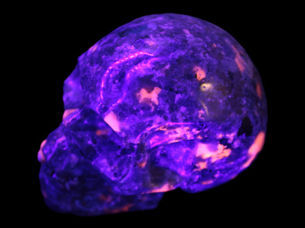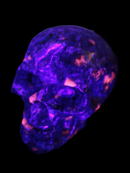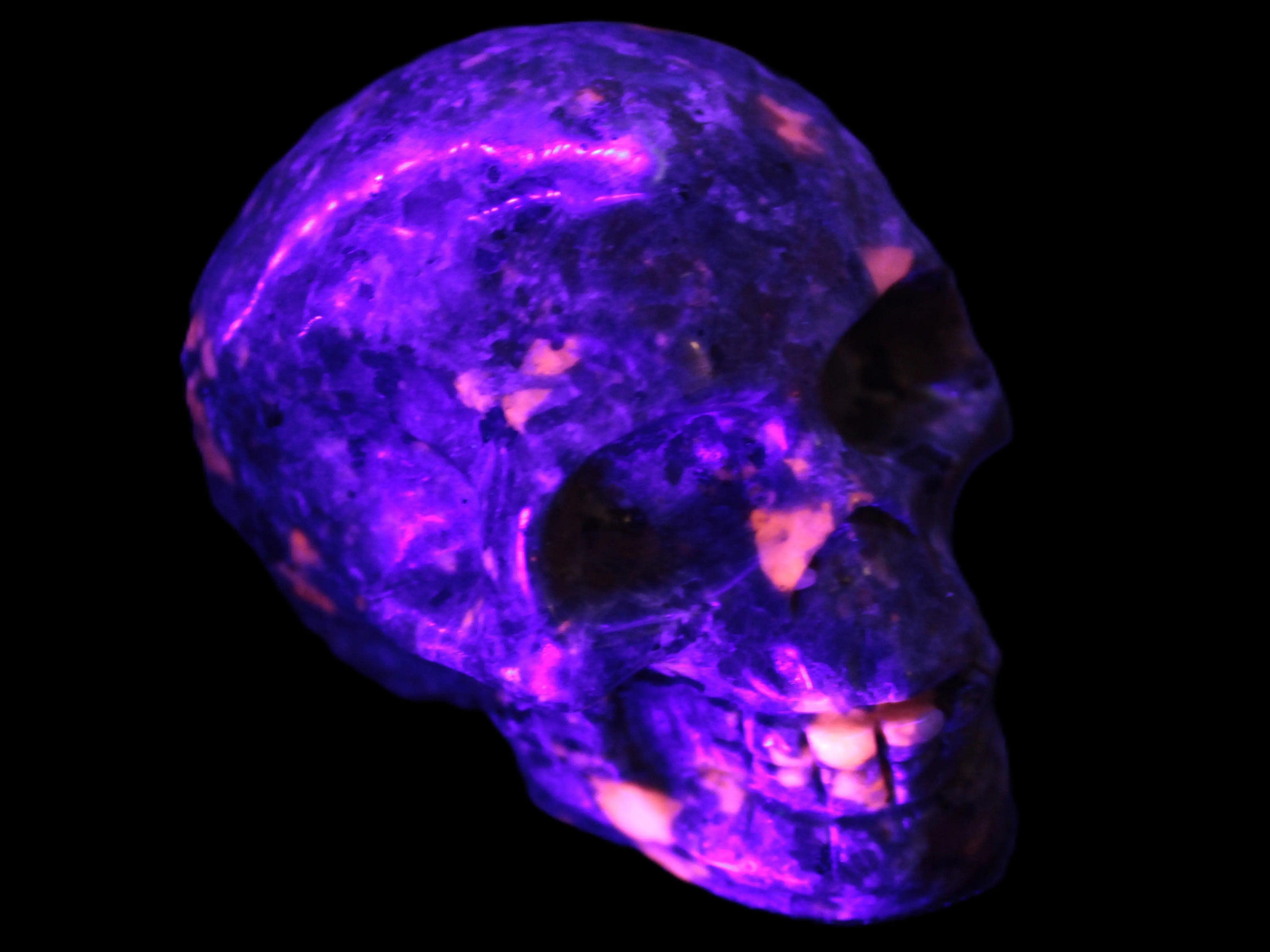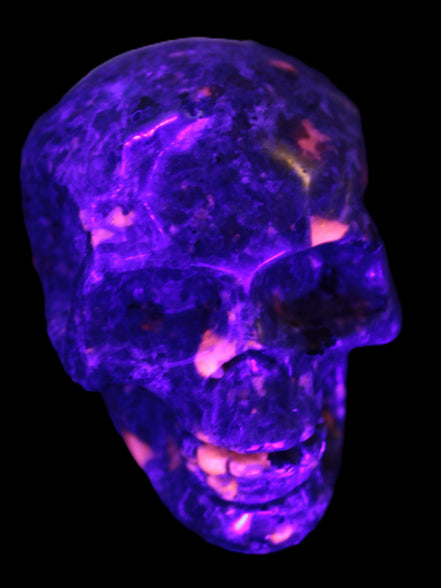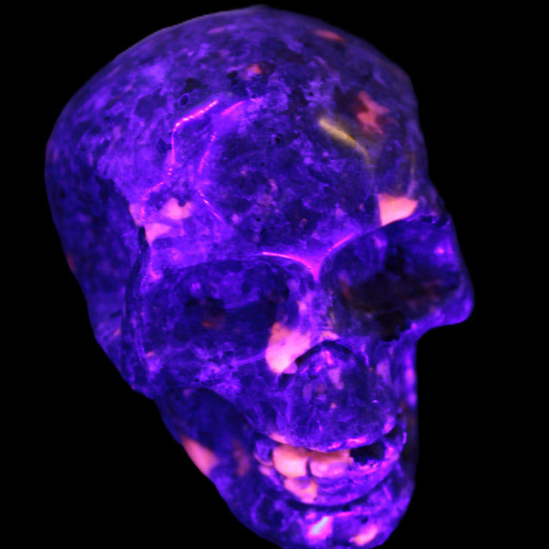 This Yooperlite skull 367g is a large hand carving from this amazing stone. At the base, it is wide and 83mm deep. It stands 60mm tall.